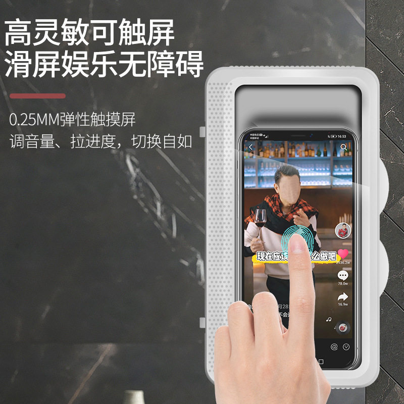 【可伸缩旋转】浴室防水触屏手机盒洗澡看电视手机架厨房懒人支架厕所追剧神器放玩卫生间淋浴房贴墙壁面上