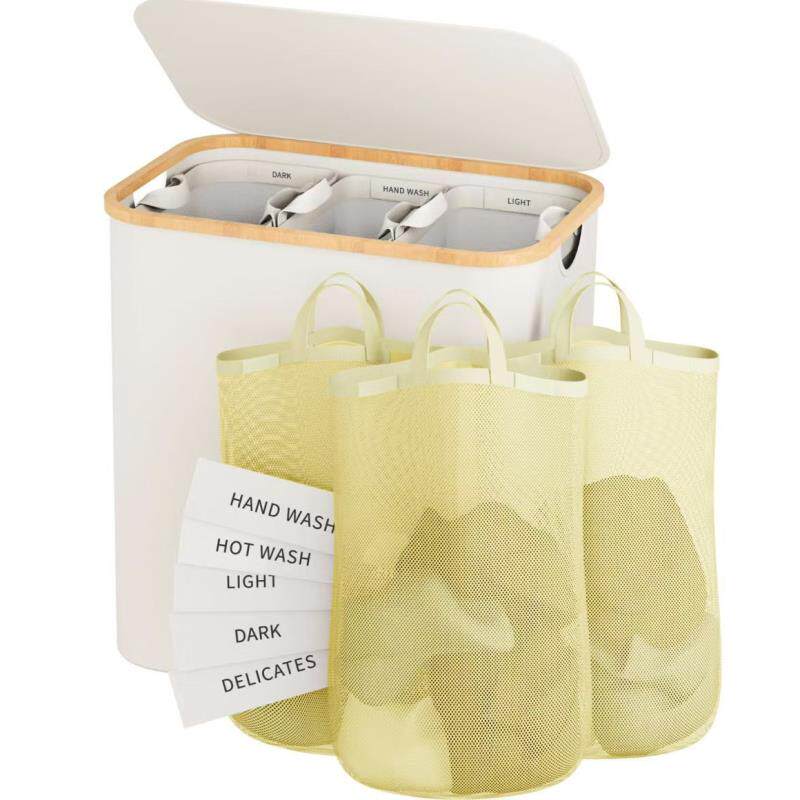 跨境竹木脏衣篮卧室配内袋带盖可折叠脏衣服收纳筐浴室大号脏衣篓
