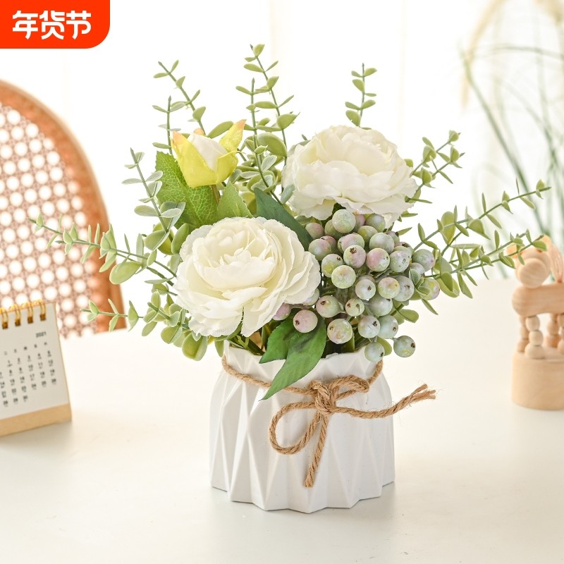 仿真花植物小盆栽办公桌家居摆件客厅室内装饰假花干花花束摆放