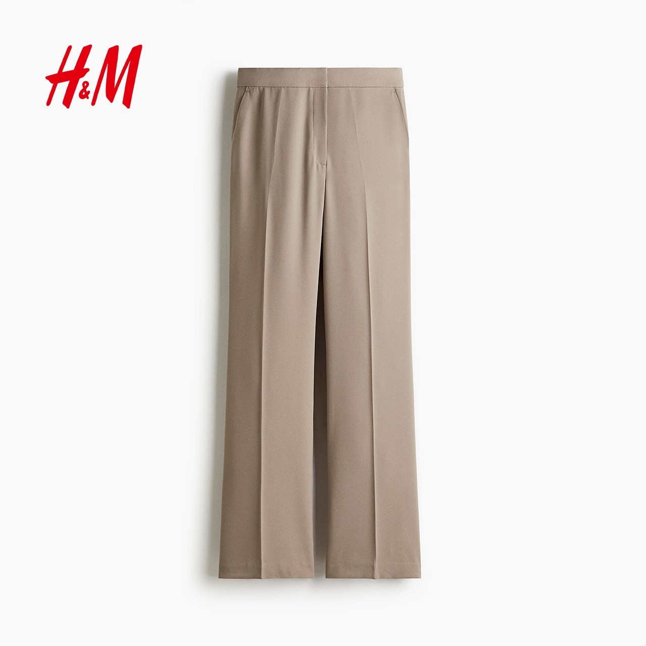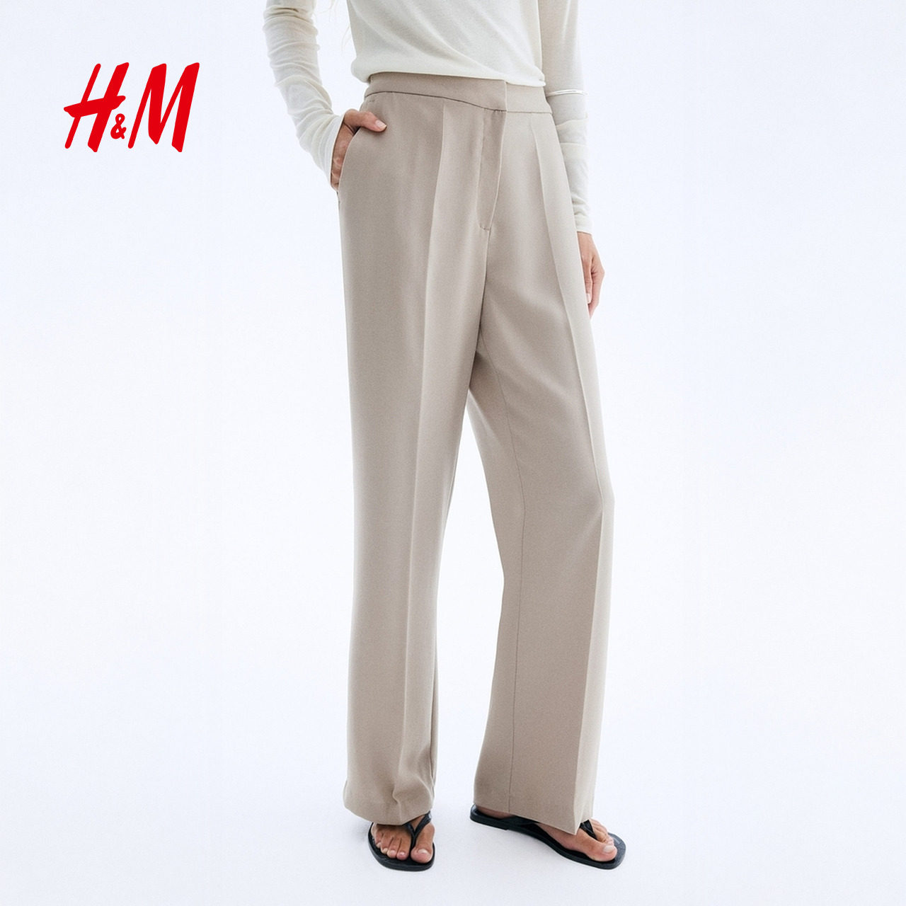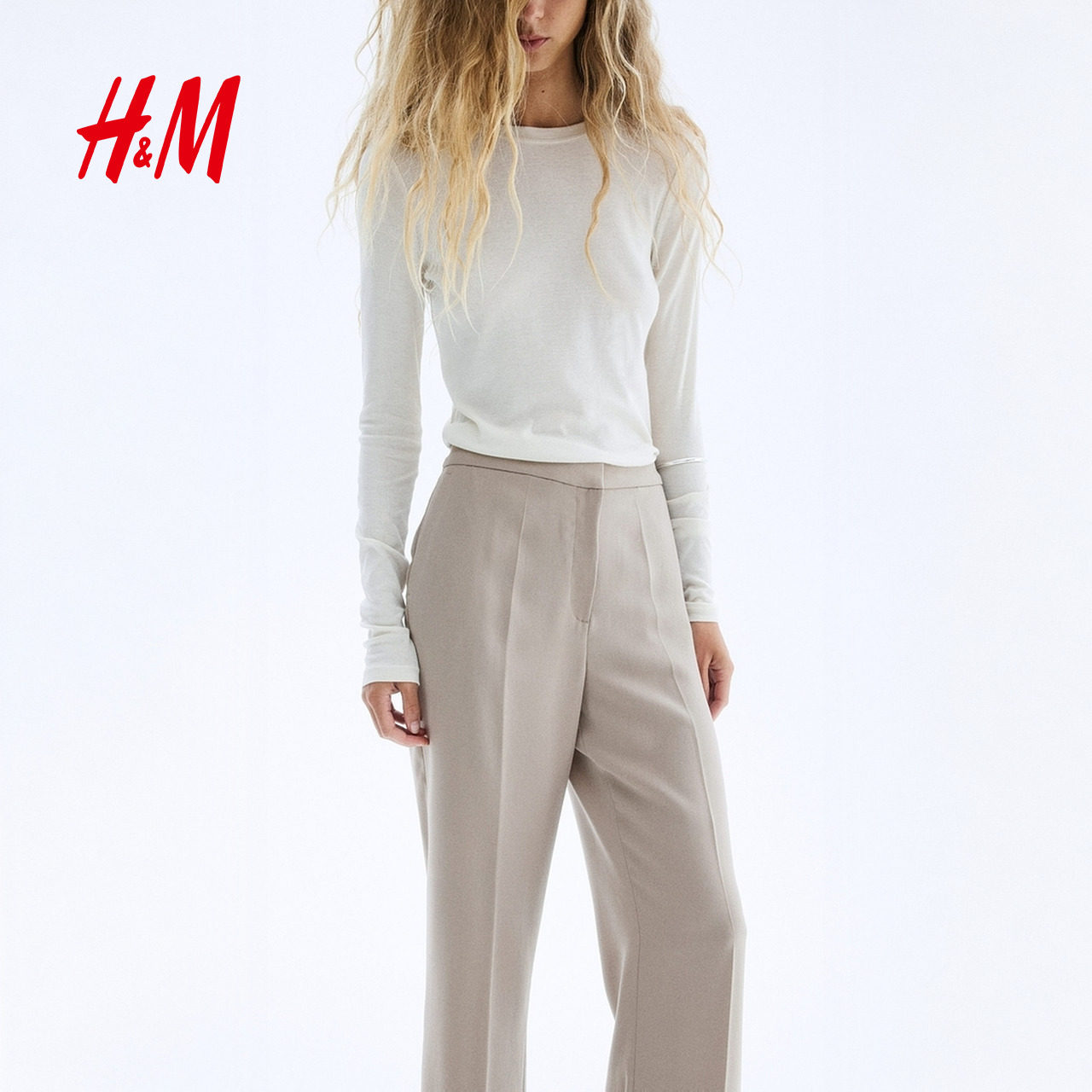 HM女装休闲裤2025年秋季新款时尚潮流裤腿烫折直筒长裤1293556