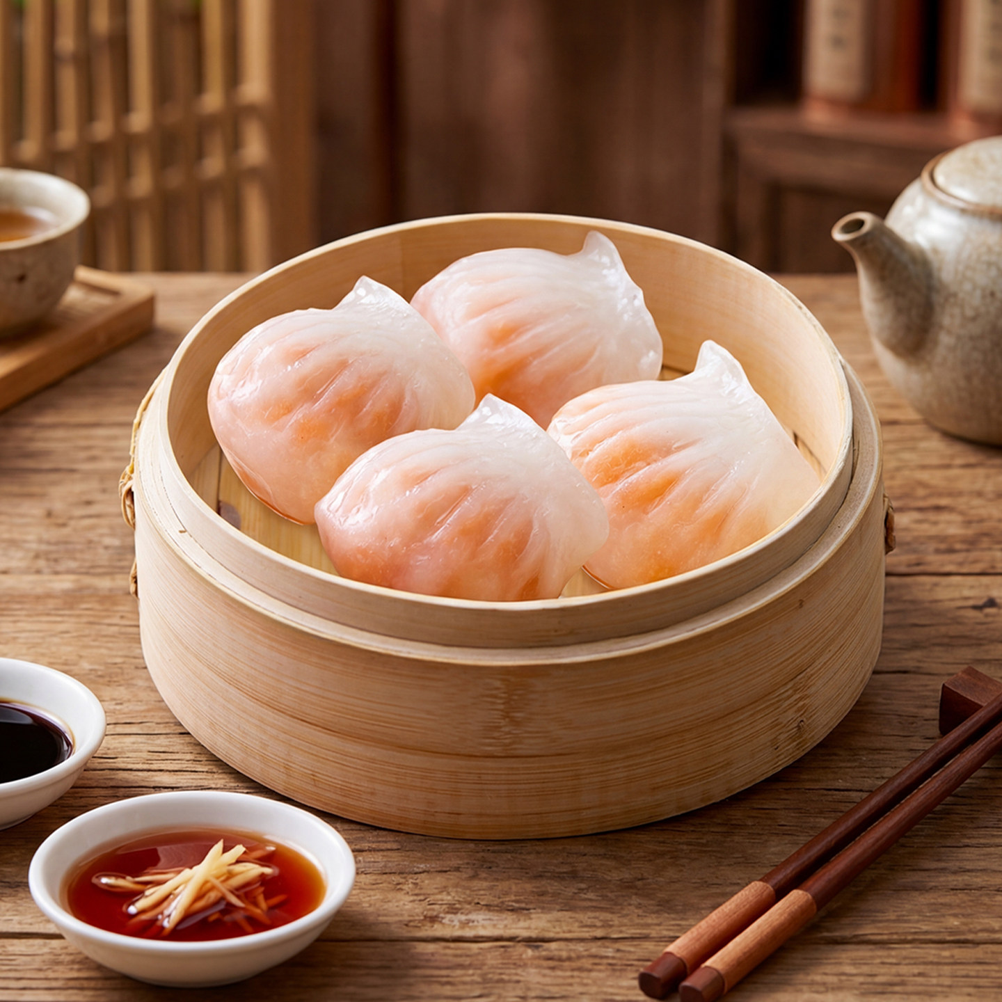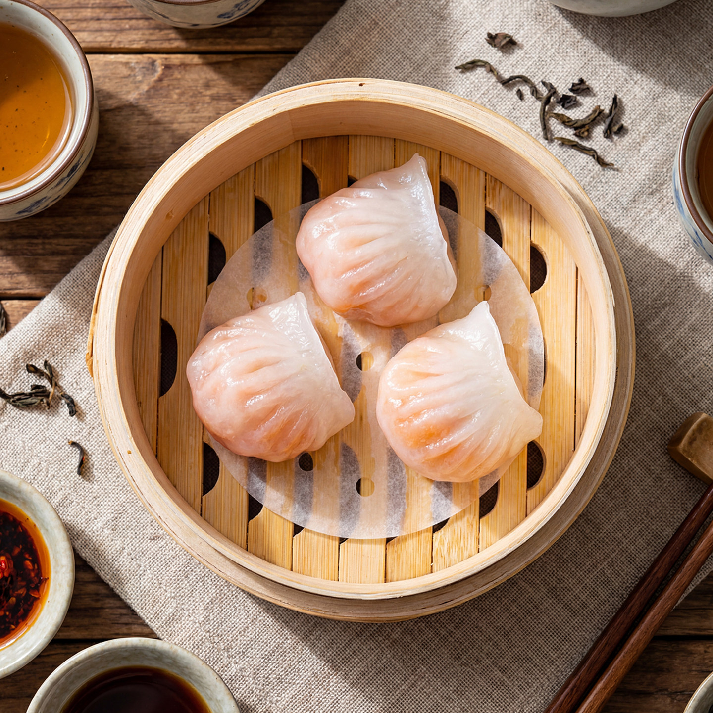 广式水晶虾饺早餐半成品广东早茶点心加热即食红米肠叉烧包核桃包