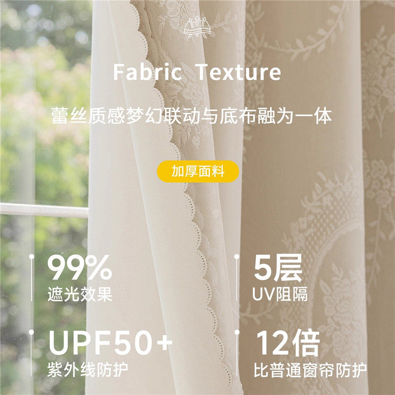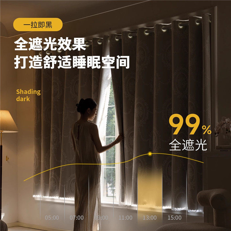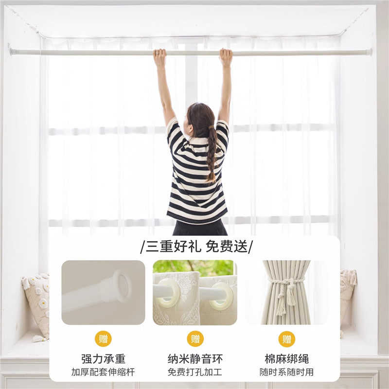 卧室窗帘全遮光伸缩杆一整套免打孔安装2025新款飘窗双层布纱一体