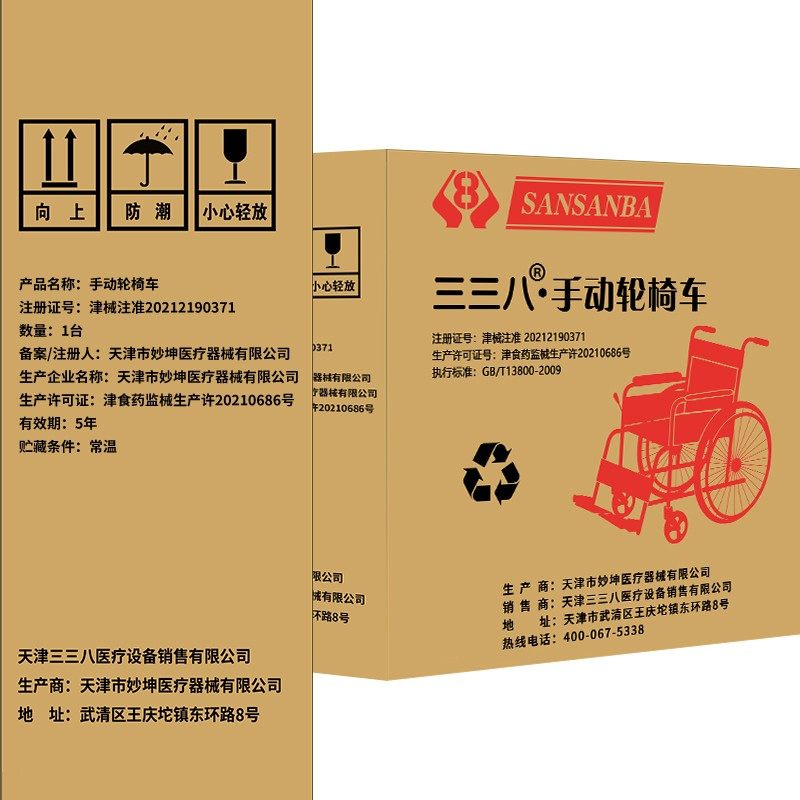 三三八手动轮椅车老人多功能耐用折叠老年人代步车手推车便携轮椅