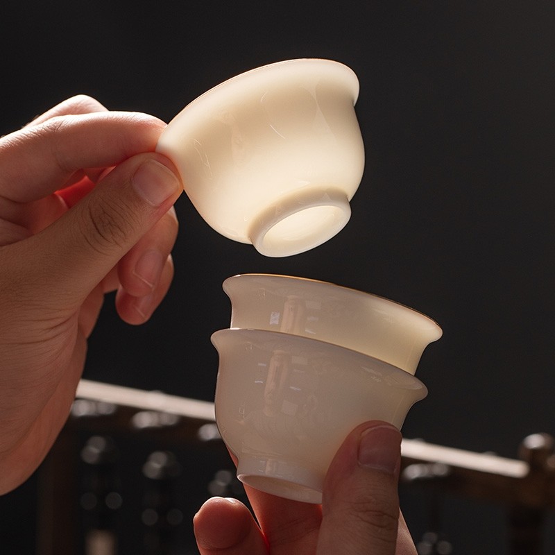 功夫茶杯6羊脂玉杯子陶瓷主人杯品茗杯茶具茶杯套装家用白瓷单杯
