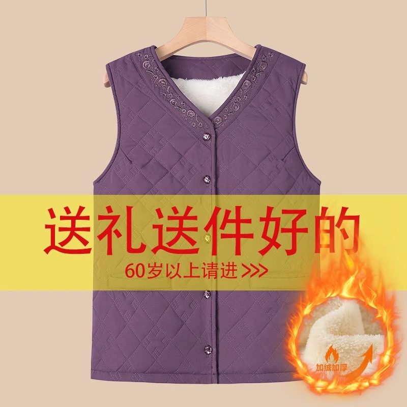 中老年人冬装保暖马甲女奶奶加绒加厚背心老太太马夹妈妈坎肩外套