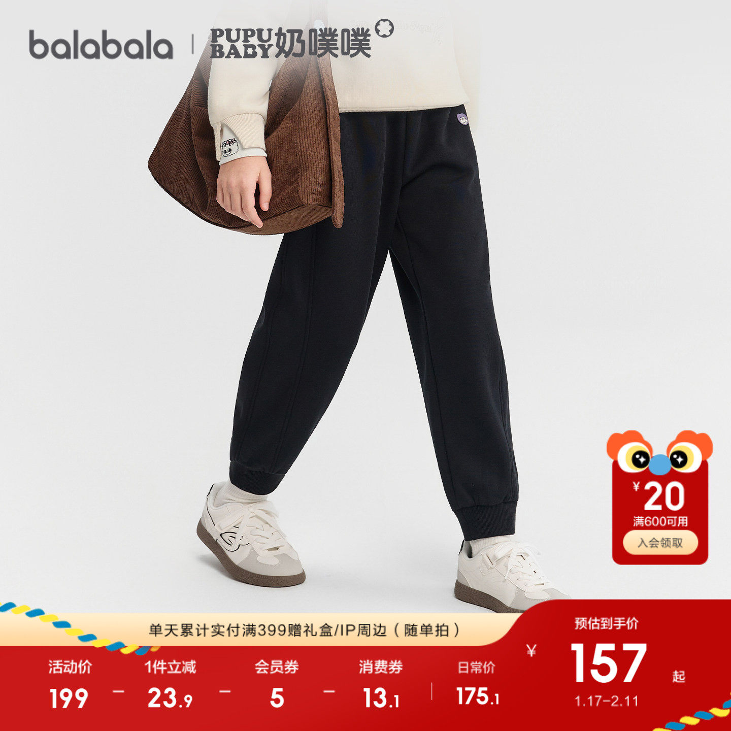 【奶噗噗IP商场同款】巴拉巴拉童装女童加绒裤子2025秋冬装新款潮