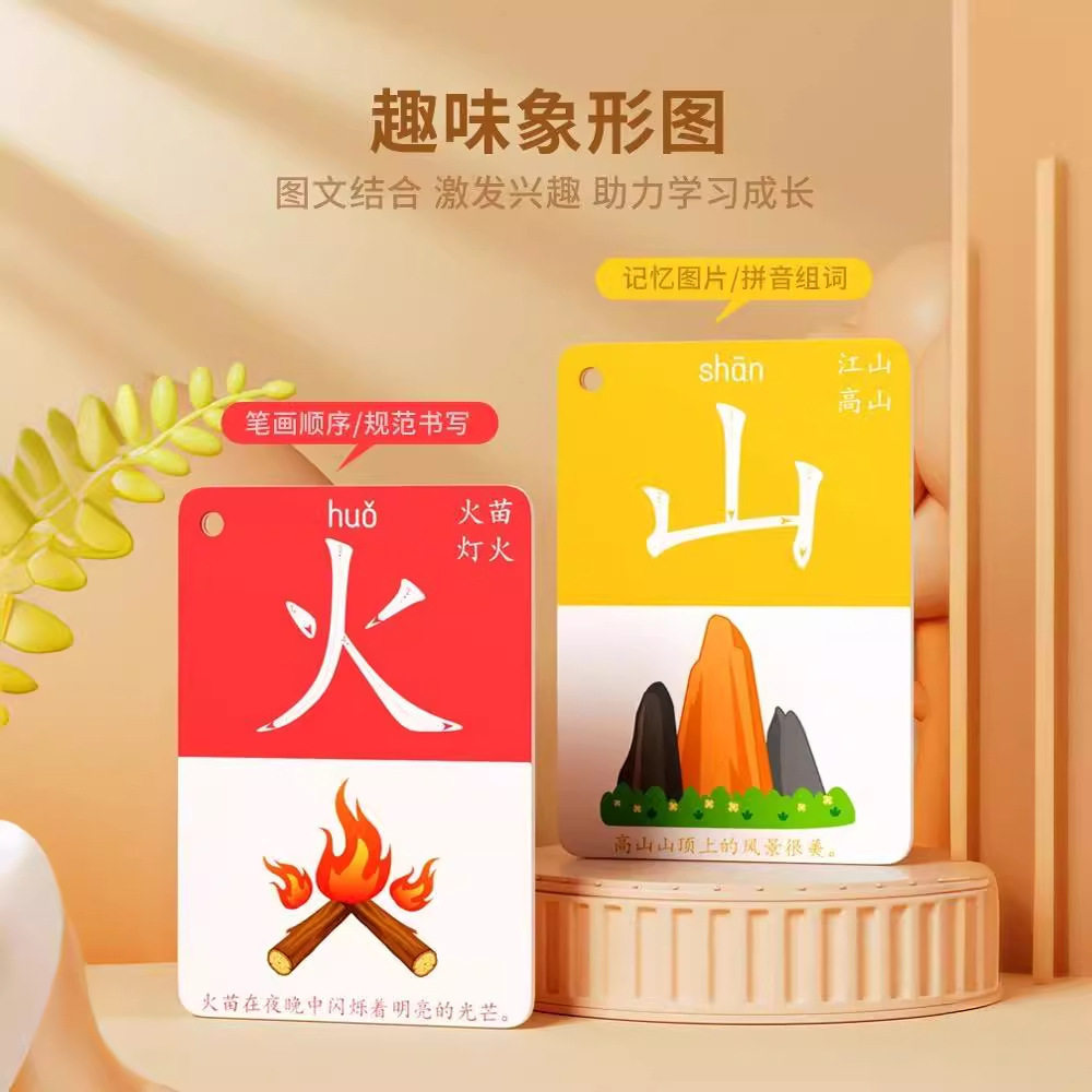 儿童象形识字卡片益智启蒙幼儿早教认知卡汉语拼音宝宝看图认字