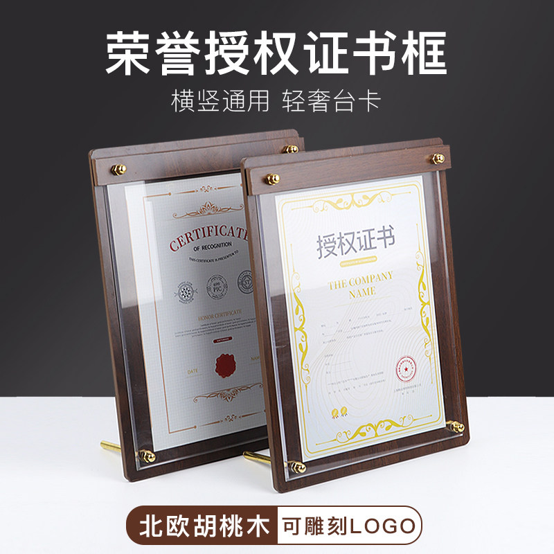 外壳优秀员工桌面专利A4授权书相框展示获奖木质高档荣誉证书结业