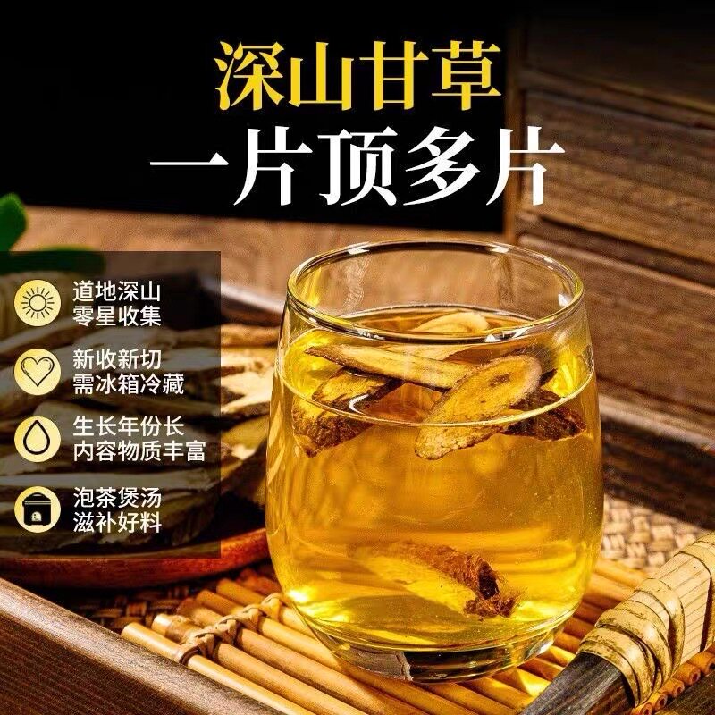 甘肃野生甘草中药材官方旗舰店生甘草斜片甘草茯苓白芍黄芪泡水喝