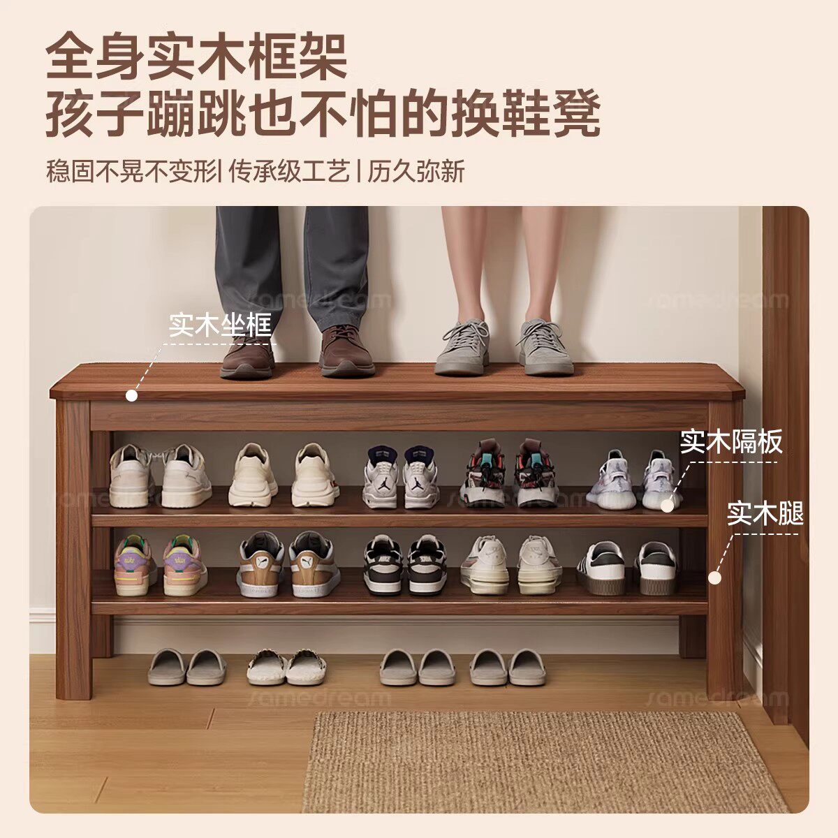 全实木换鞋凳家用入户门口玄关简约鞋柜可坐穿鞋凳子多层收纳鞋架