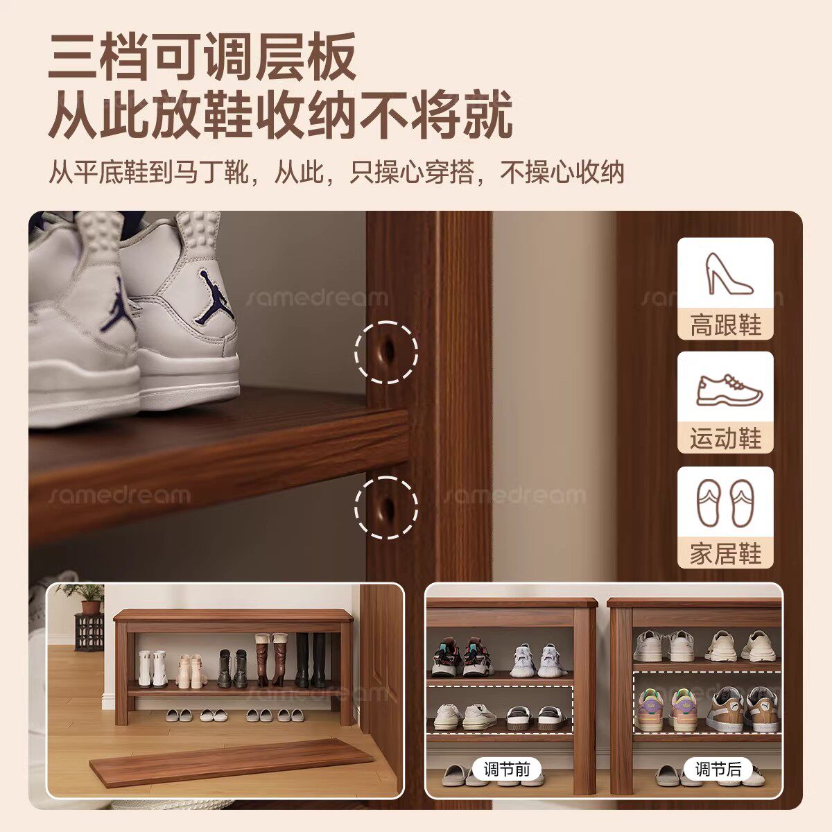 实木换鞋凳可坐鞋柜免安装一体式家用入户门口玄关多层小窄鞋架子
