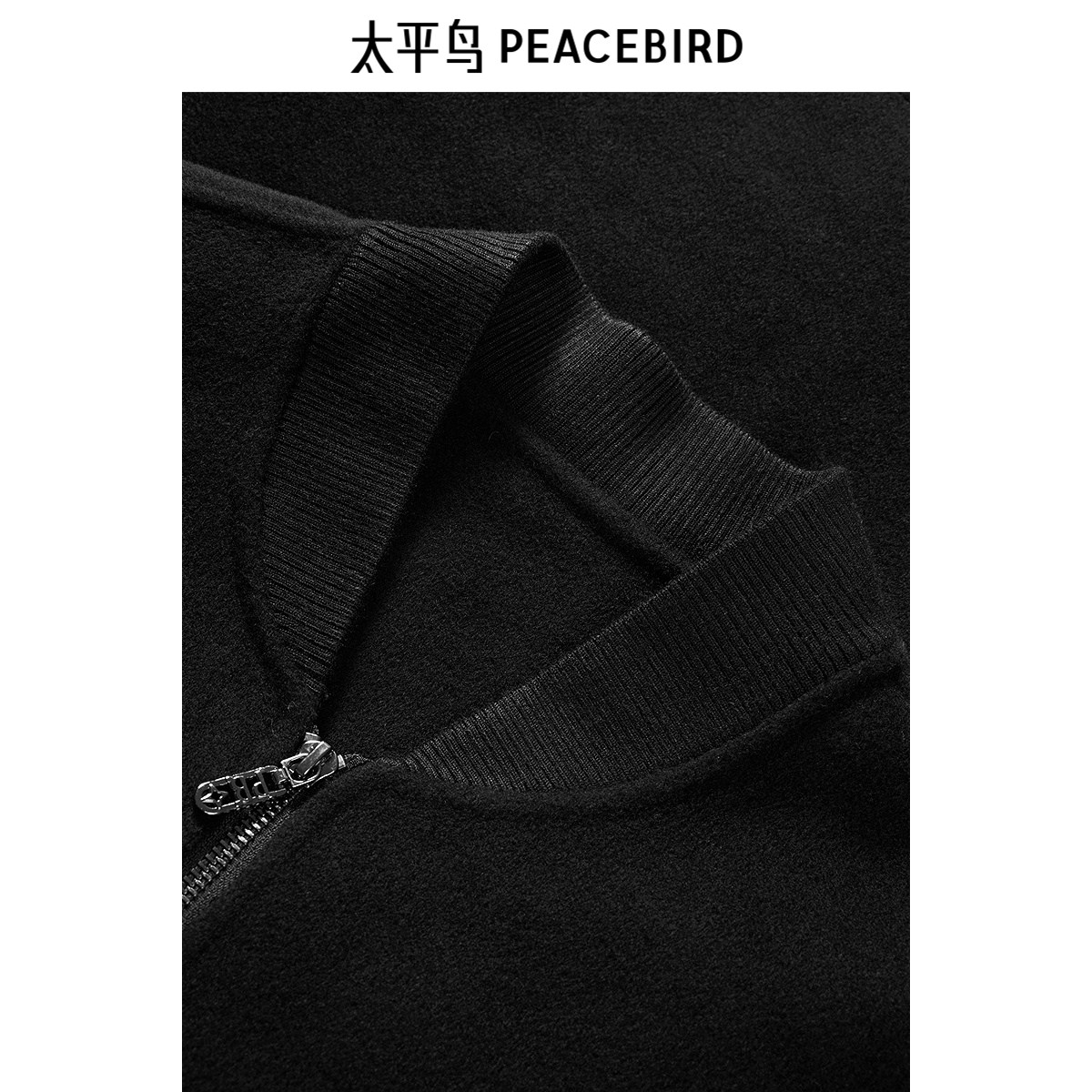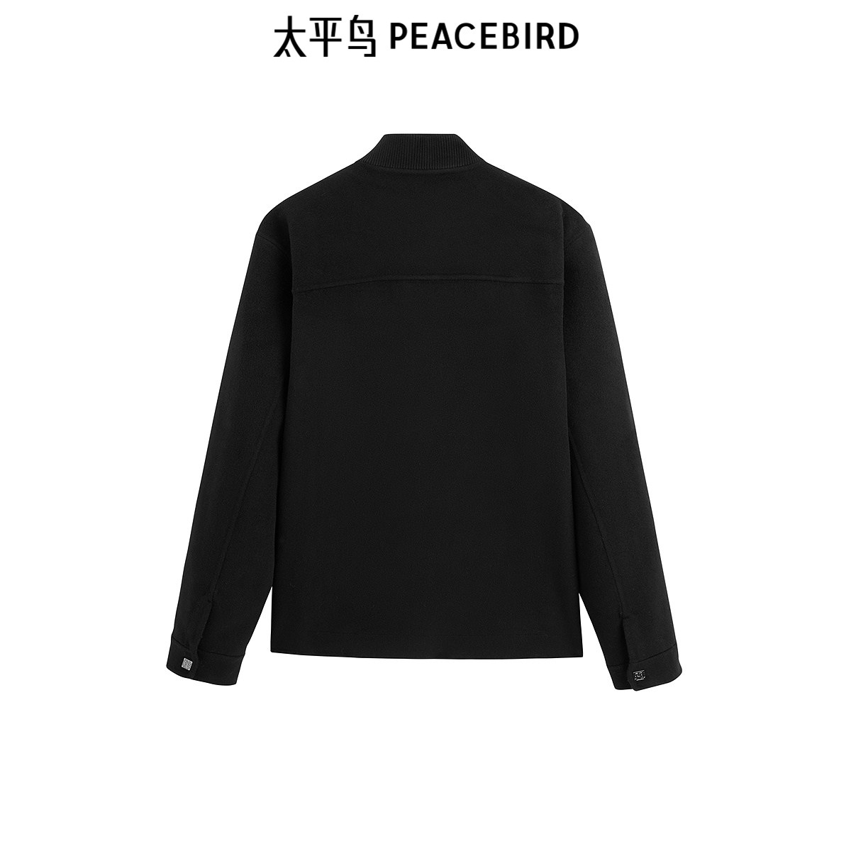太平鸟男装 黑色羊毛混纺棒球领休闲夹克男翻领拉链时尚外套潮