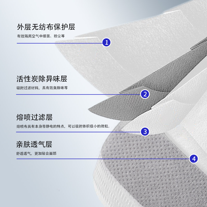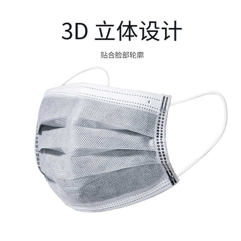 一次性活性炭口罩灰色四层独立包装防尘防甲醛透气无纺布黑色口罩 50个一盒
