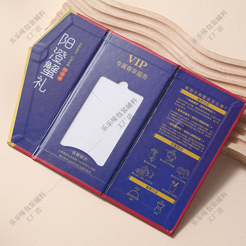 现货阳澄湖大闸蟹卡套三折抽拉通用卡套螃蟹包装礼品提货VIP卡套