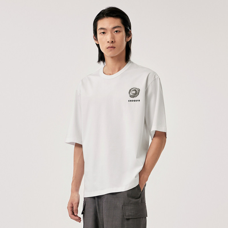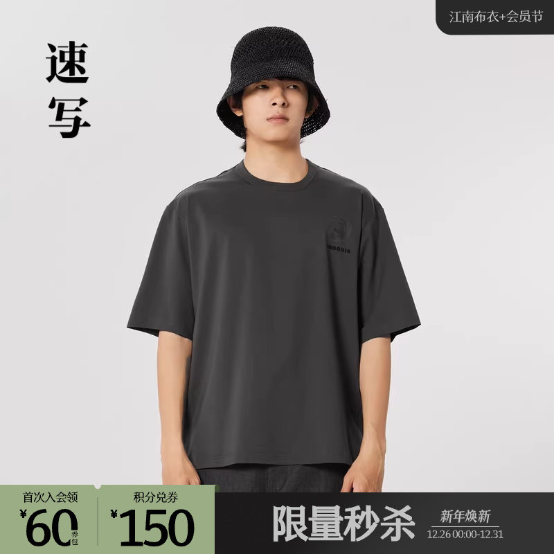 速写outlets奥莱男装早春折扣新款T恤短袖撞色印花休闲舒适时尚潮