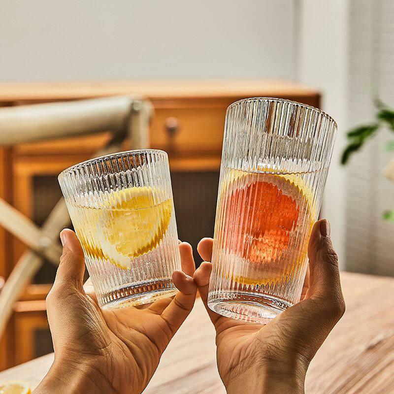 网红玻璃杯ins风果汁杯子创意竖纹奶昔杯咖啡杯家用透明水杯茶杯