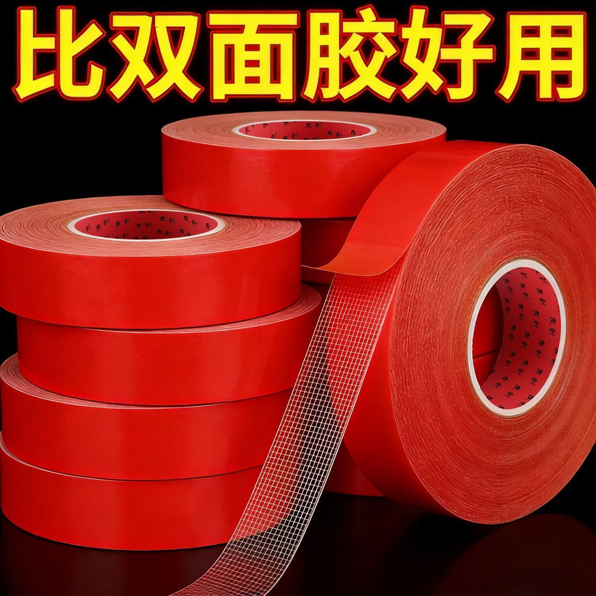 高粘度红色网格布基双面胶带贴春联撕下不留痕婚车年画网格胶布