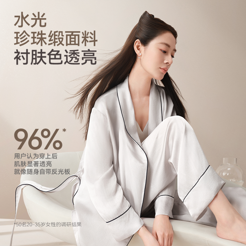 【肖战同款】猫人男女士睡衣夏季2025高级感长袖珍珠缎睡袍家居服