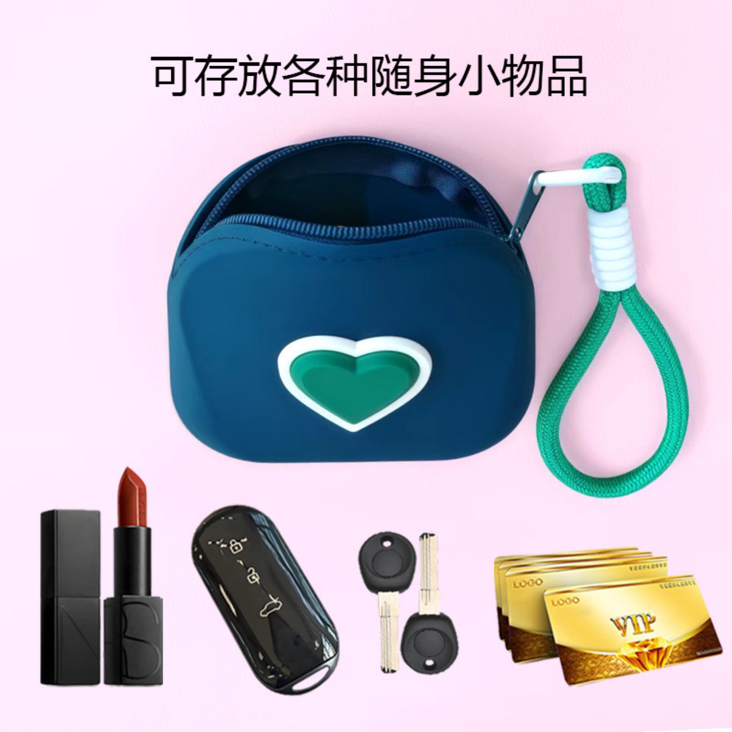 迷你硅胶爱心派对零钱包钥匙扣挂件可爱儿童小包钥匙包耳机收纳包
