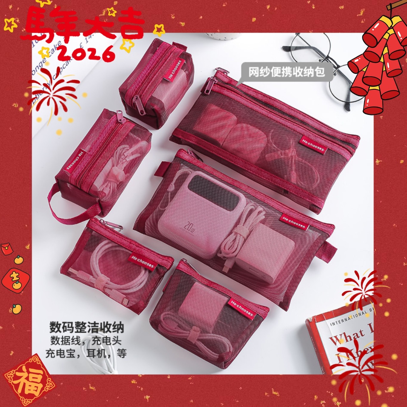 氛围装饰品礼物透明尼龙收纳包加厚网纱便携旅行分装零钱包卡数据线耳机线钥匙U盘盾杂物多功能化妆
