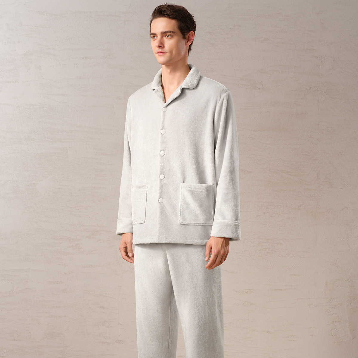 【珊瑚绒】安莉芳旗下E-BRA冬季宽松加厚睡衣男可外穿家居服套装