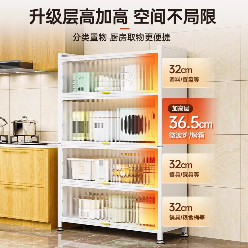 厨房置物架落地多层防尘收纳柜子家用多功能碗柜餐边柜橱柜储物柜