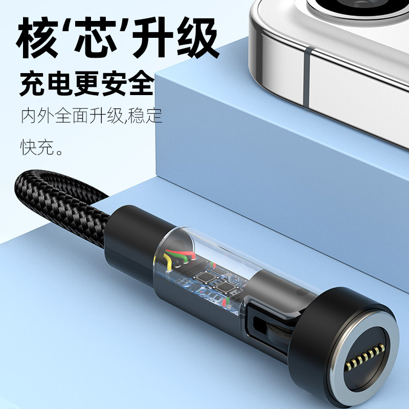 弯头旋转66w磁吸超级快充数据线适用华为苹果x安卓typec手机强磁力充电线器磁性磁铁吸头三合一闪充5A车载tpc