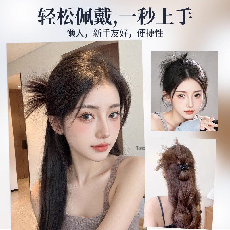 低扎丸子头假发鸡毛头抓夹盘发发包慵懒感造型头饰自然蓬松后脑勺