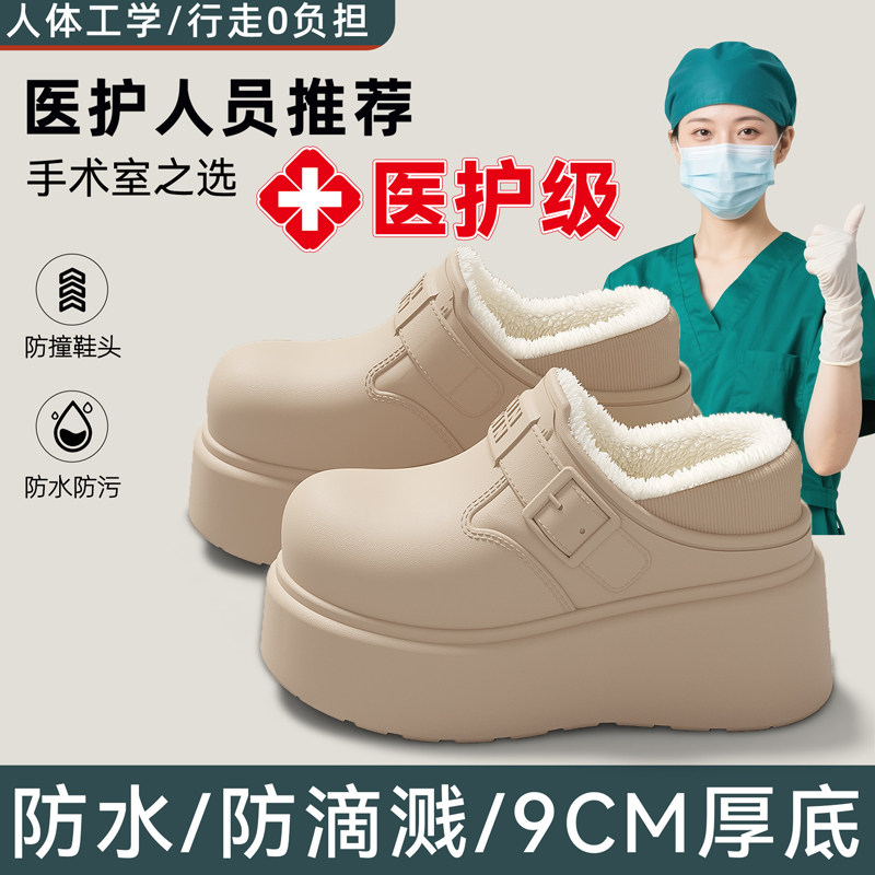 德国医用手术室防水棉拖鞋女士冬季2025新款加厚底增高保暖棉鞋女