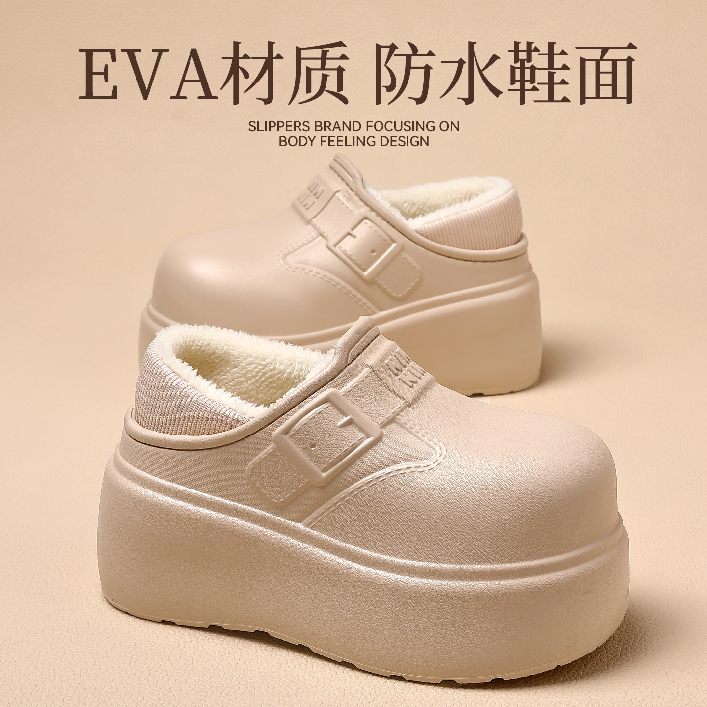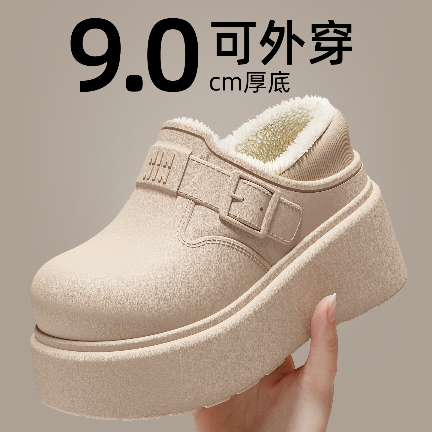 厚底防水棉拖鞋女款冬季2025新款冬季外穿防滑保暖增高棉鞋女外穿