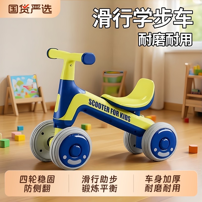 儿童平衡车1到3岁宝宝滑行小孩滑步车婴儿学步四轮溜溜车2岁入门