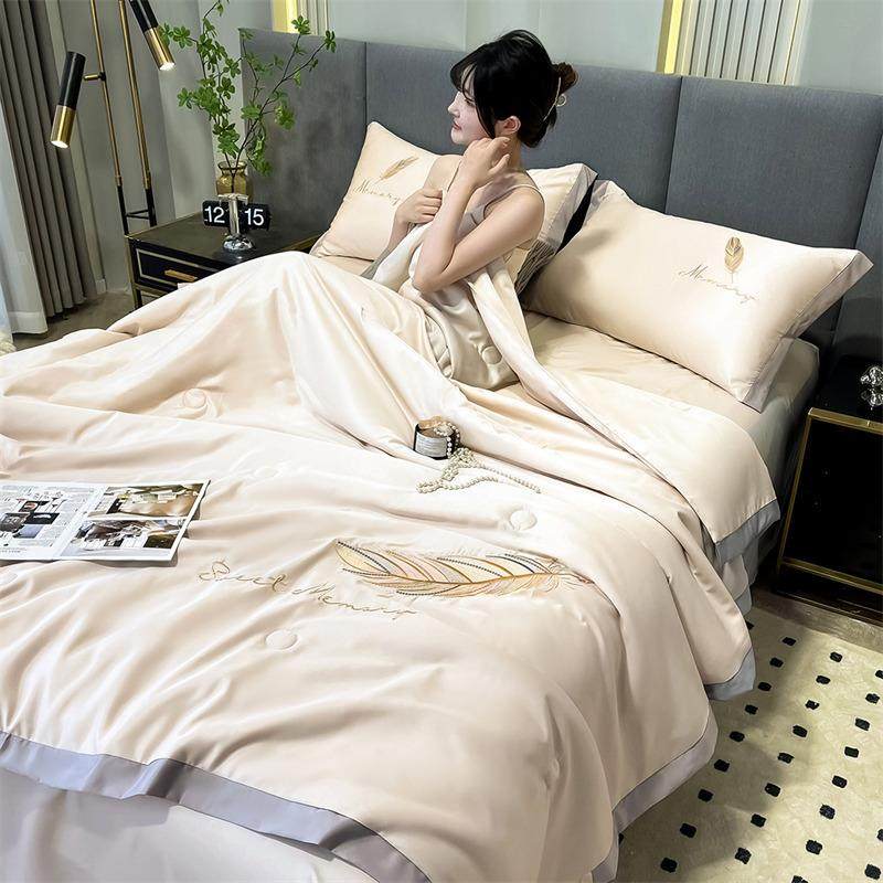 厂家直销水洗冰丝夏被三四件套可水洗机洗冰丝夏季单双人薄被子