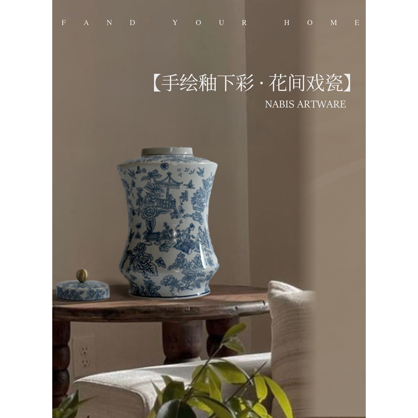 新中式瓷器玄关手绘摆件