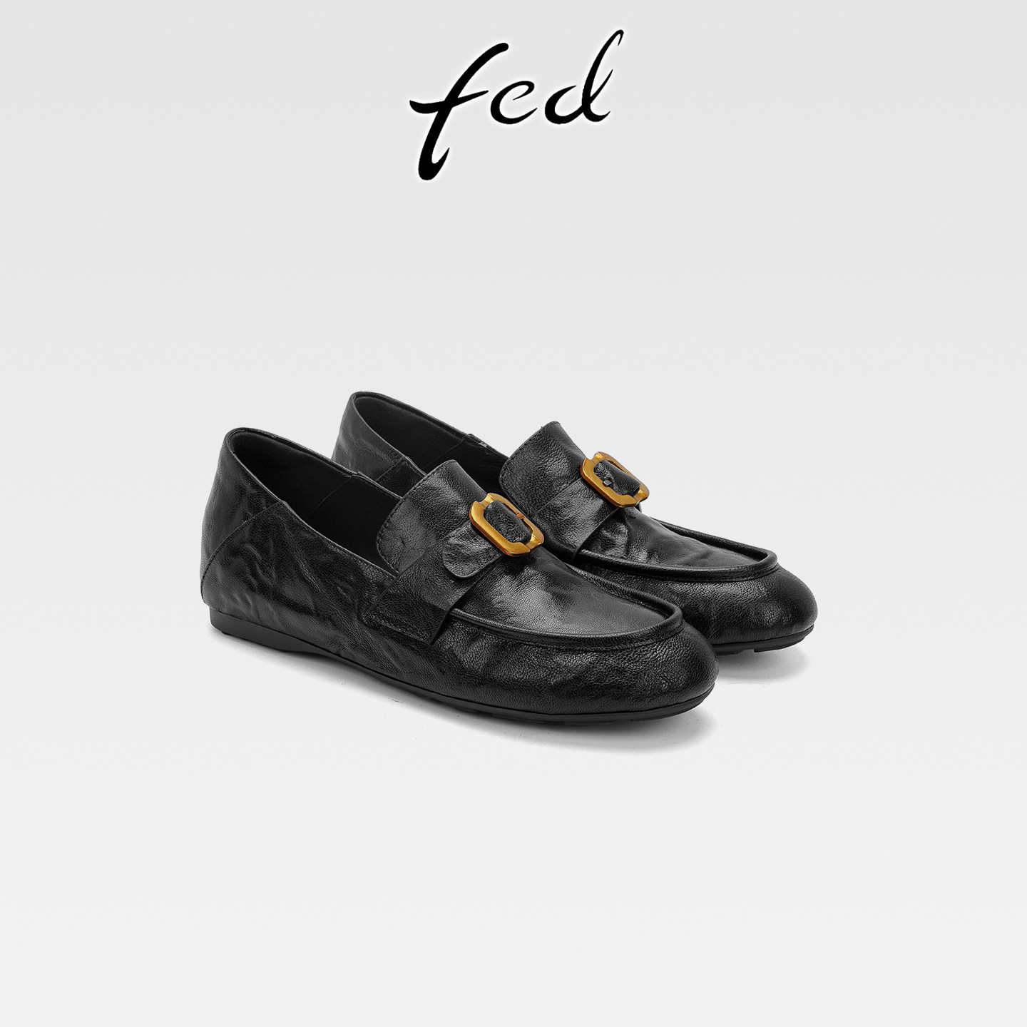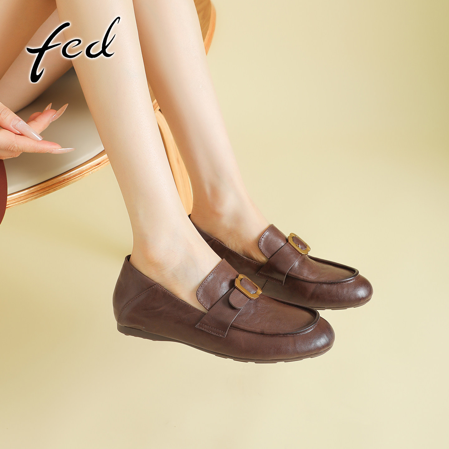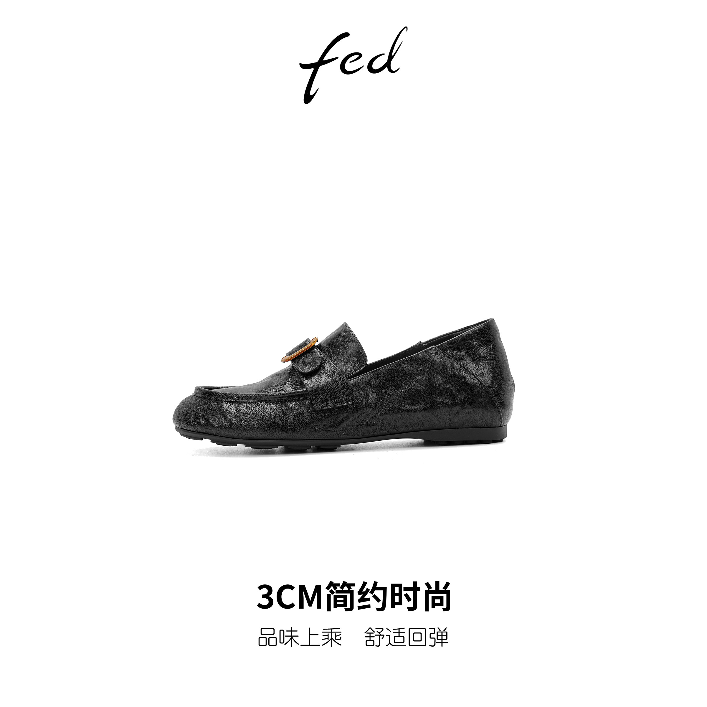 fed一脚蹬懒人内增高圆头单鞋女复古皮带扣小皮鞋真皮软底乐福鞋