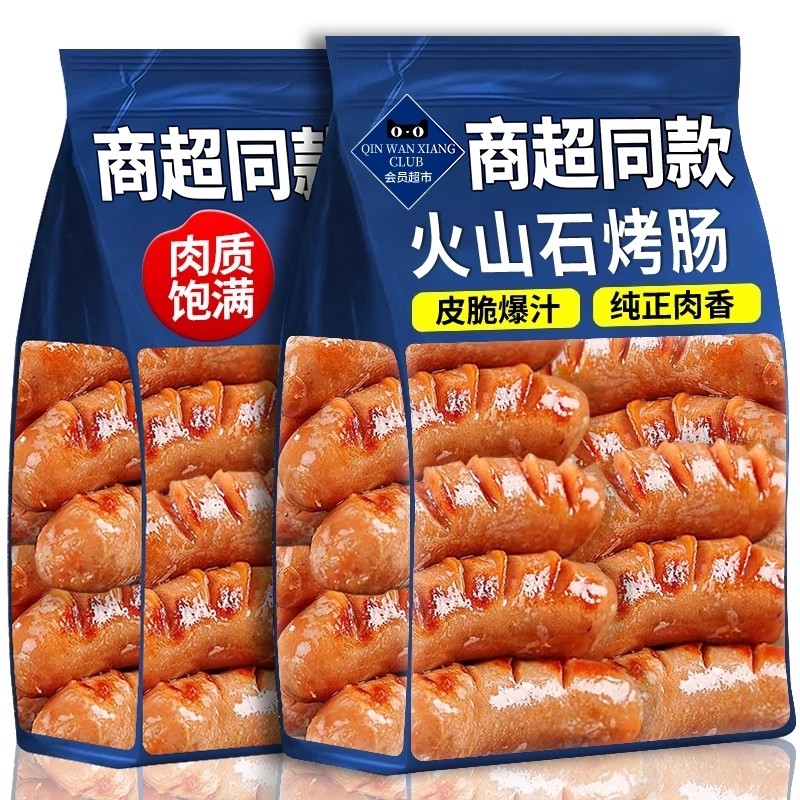 商超同款爆汁火山石烤肠地道纯香肠肉火腿猪肉肠皮脆黑椒零食
