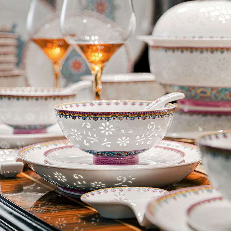 玲珑瓷高温景德镇陶瓷餐具套装2025新款家用瓷器碗碟套装乔迁新居