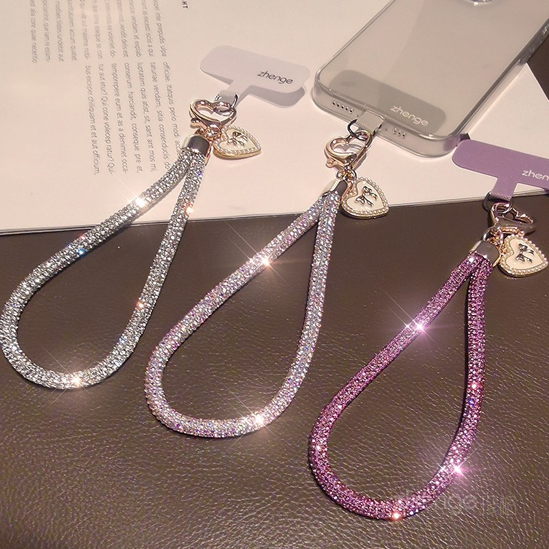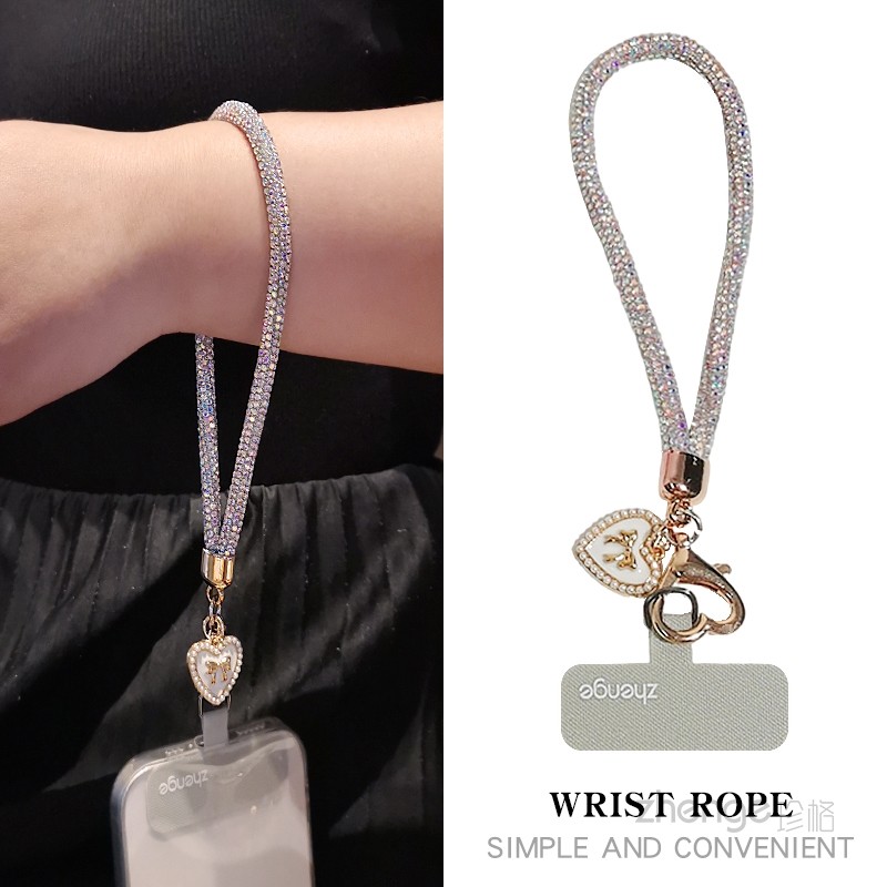 小香风满钻手机挂绳短款时尚高端蝴蝶结爱心吊牌挂件户外防丢手链