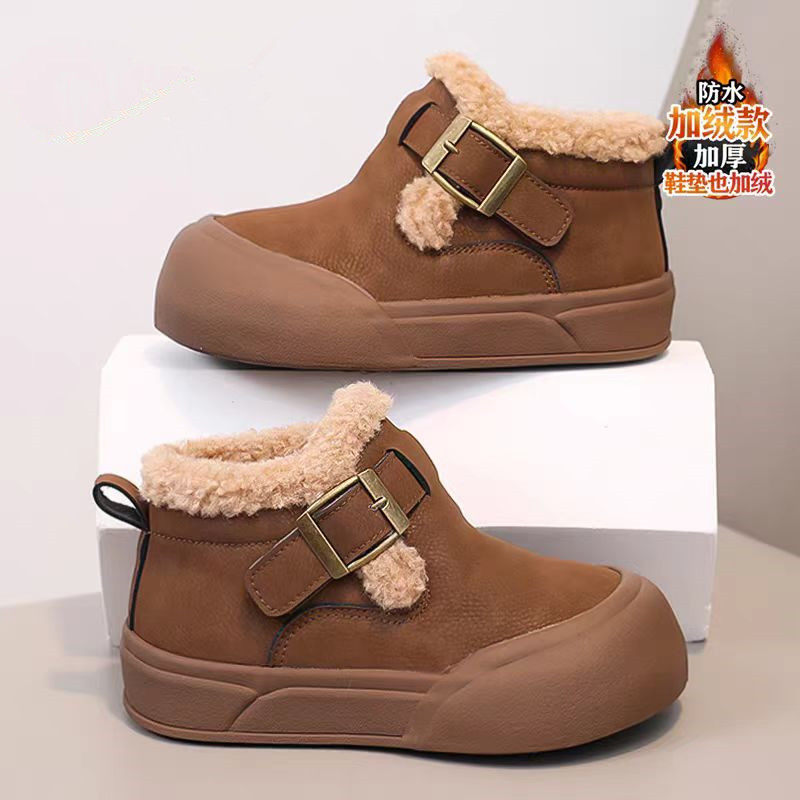 巴布豆女童棉鞋冬款2025儿童雪地靴加绒东北短筒毛毛鞋抗寒防滑
