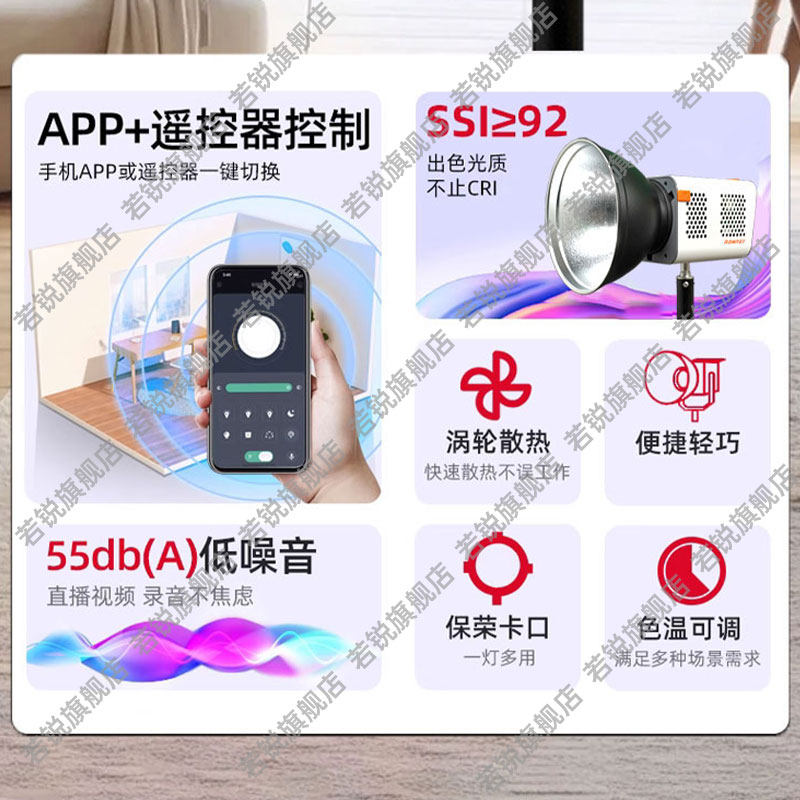 【新品】Rawray若锐200X双色温直播灯光补光灯200W主播可调色温拍摄直播间专用拍照拍美食照相证件照球型摄影