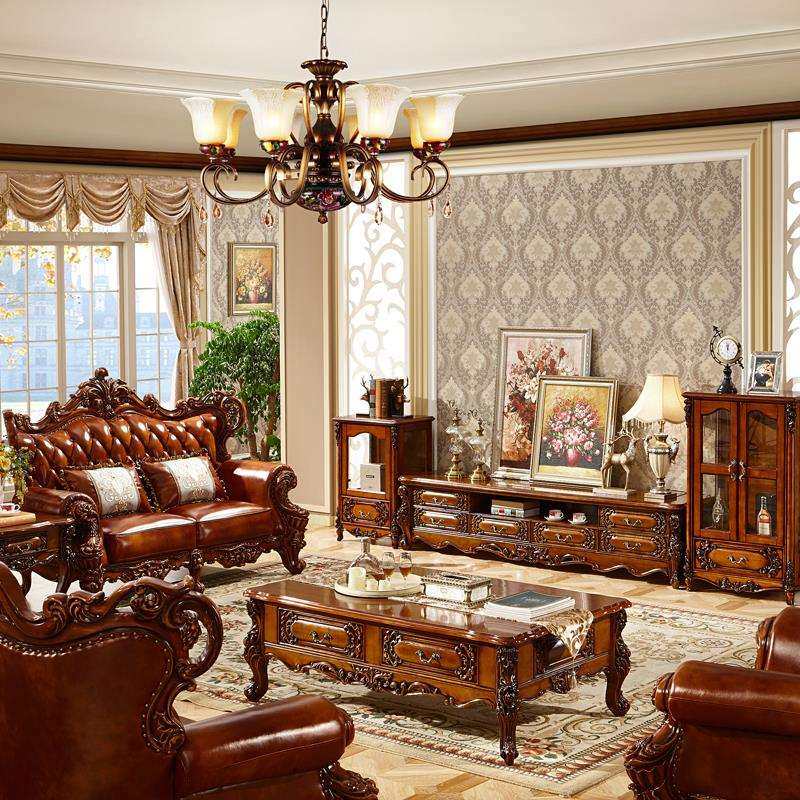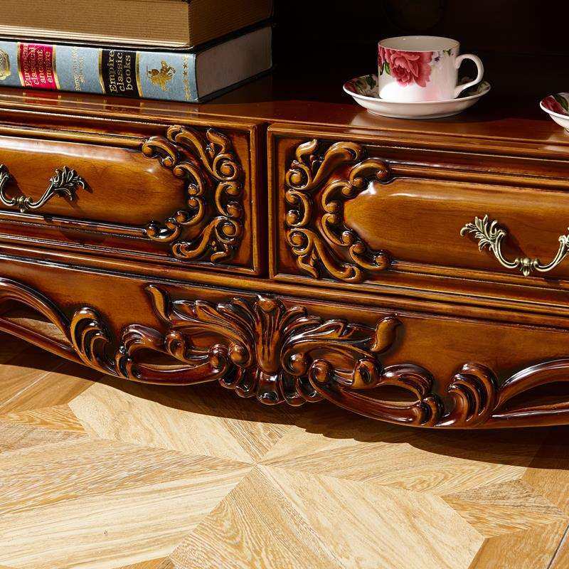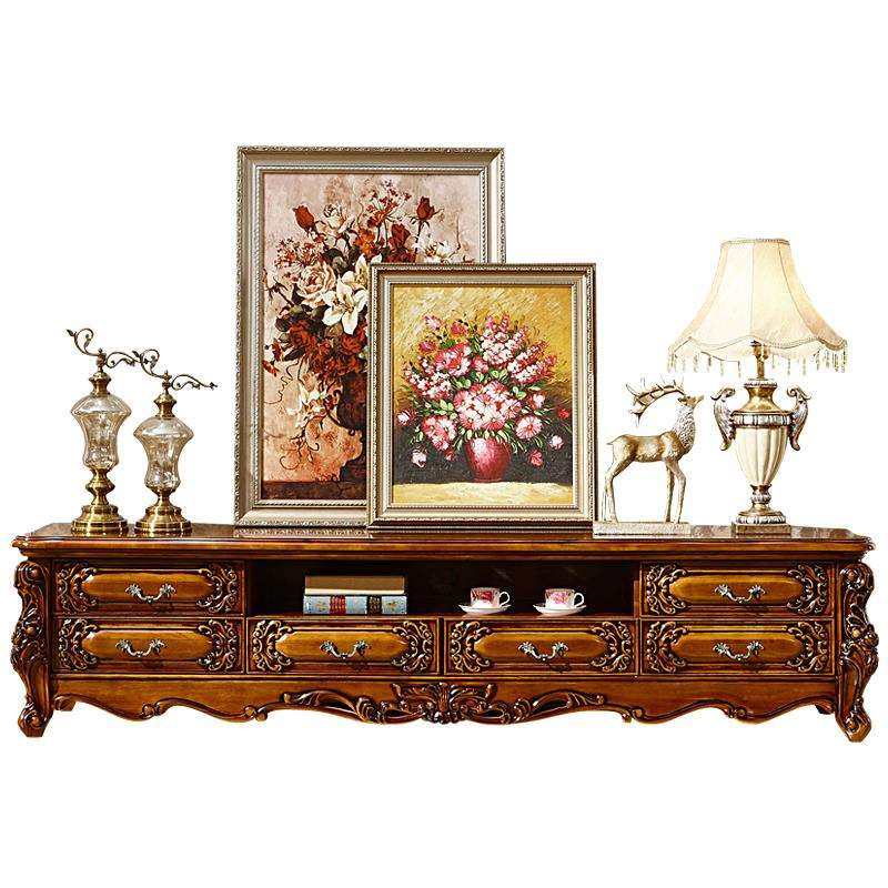 欧式全实木大理石电视柜客厅橡木雕花烤漆天然地柜茶几组合