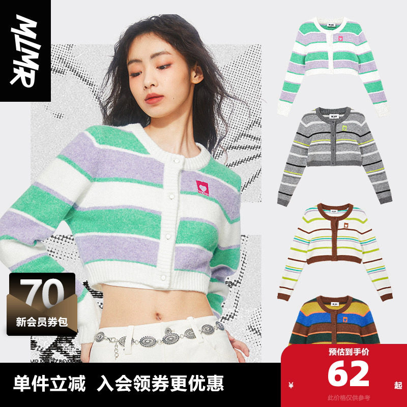 MLMR 秋多巴胺穿搭女条纹针织衫甜辣小上衣糖果色开衫毛衣男装