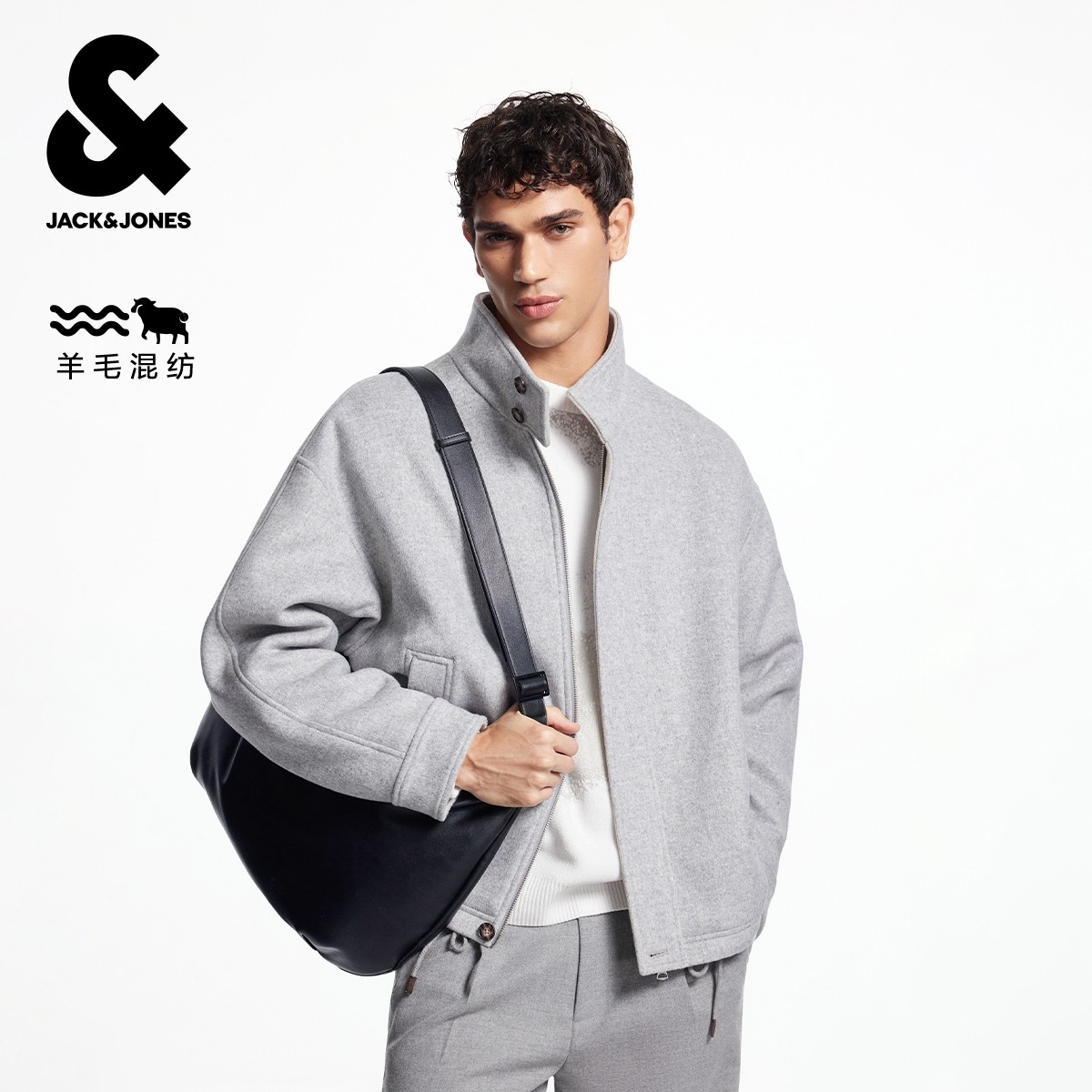 杰克琼斯男装秋冬季毛呢大衣短款保暖外套宽松休闲百搭舒适上衣款