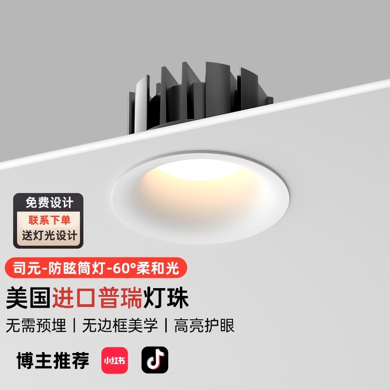 无边框led筒灯嵌入式75mm客厅家用天花灯深杯防眩射灯智能无主灯