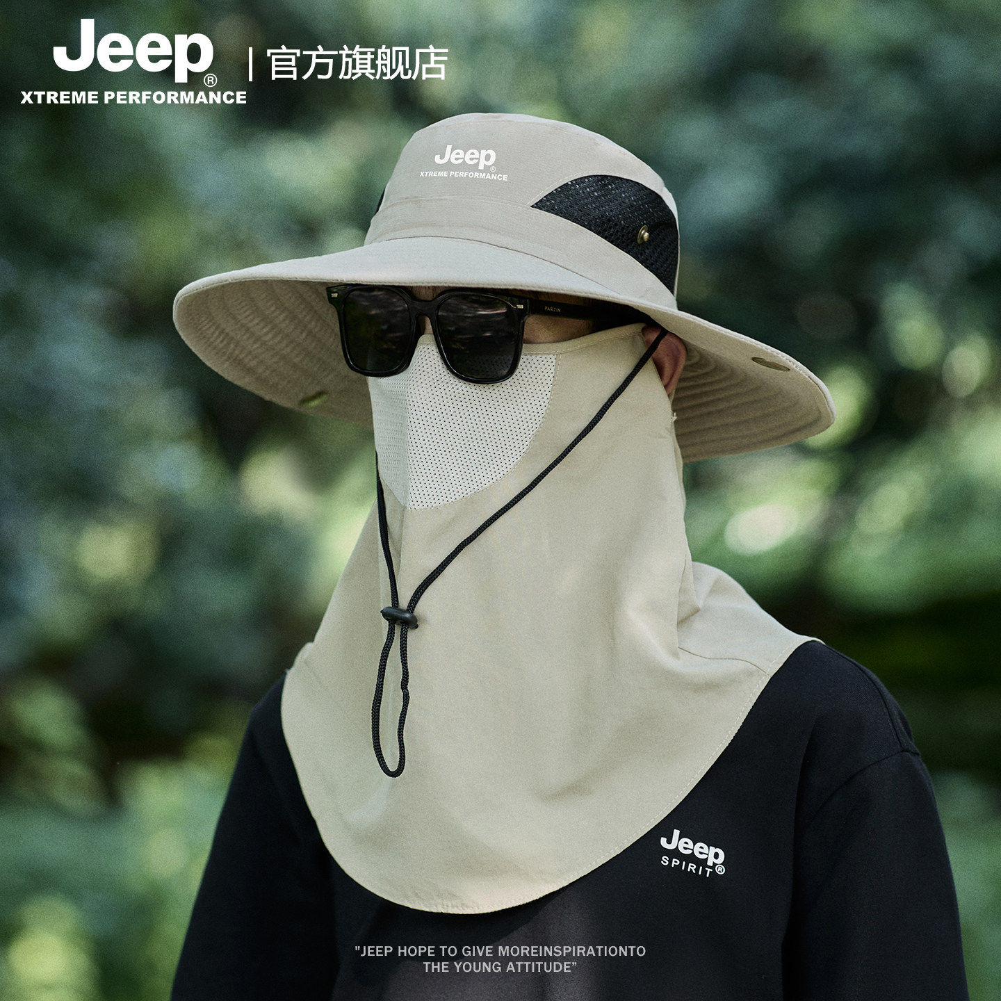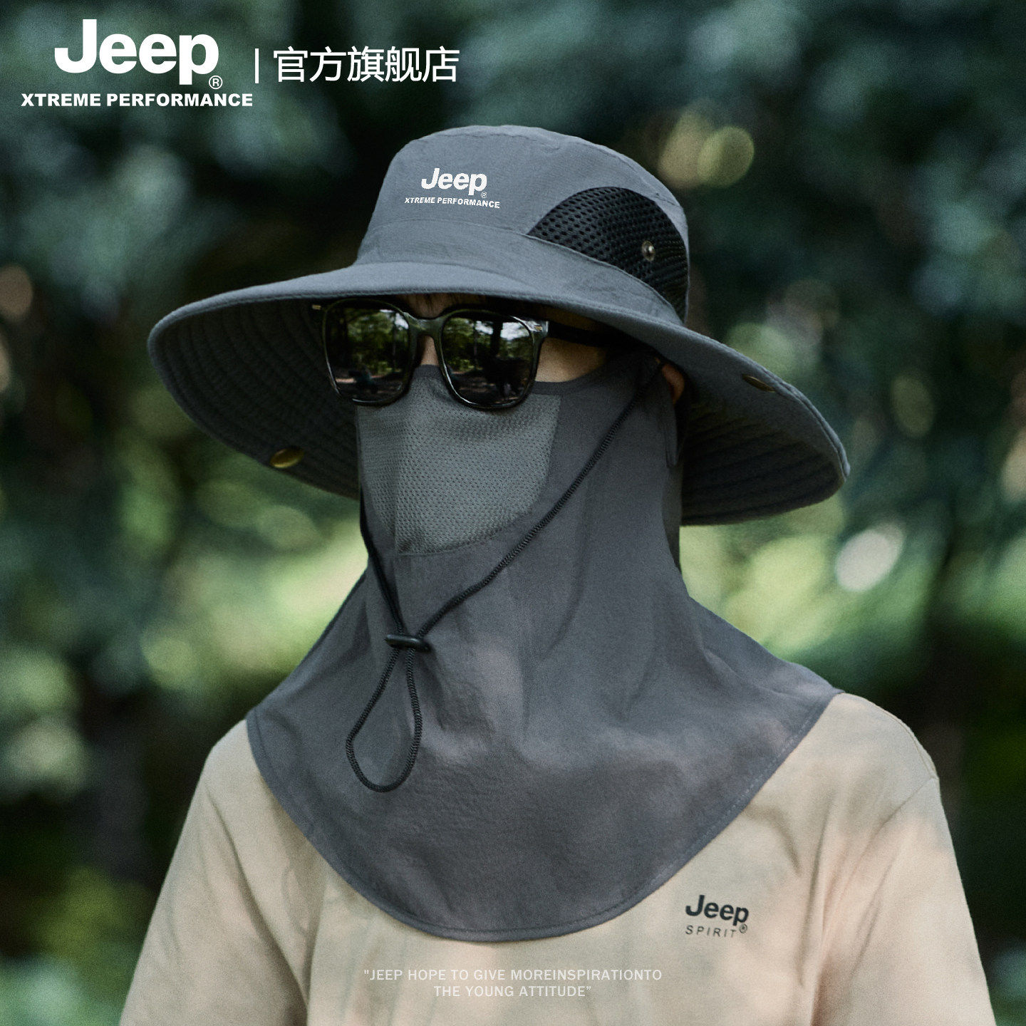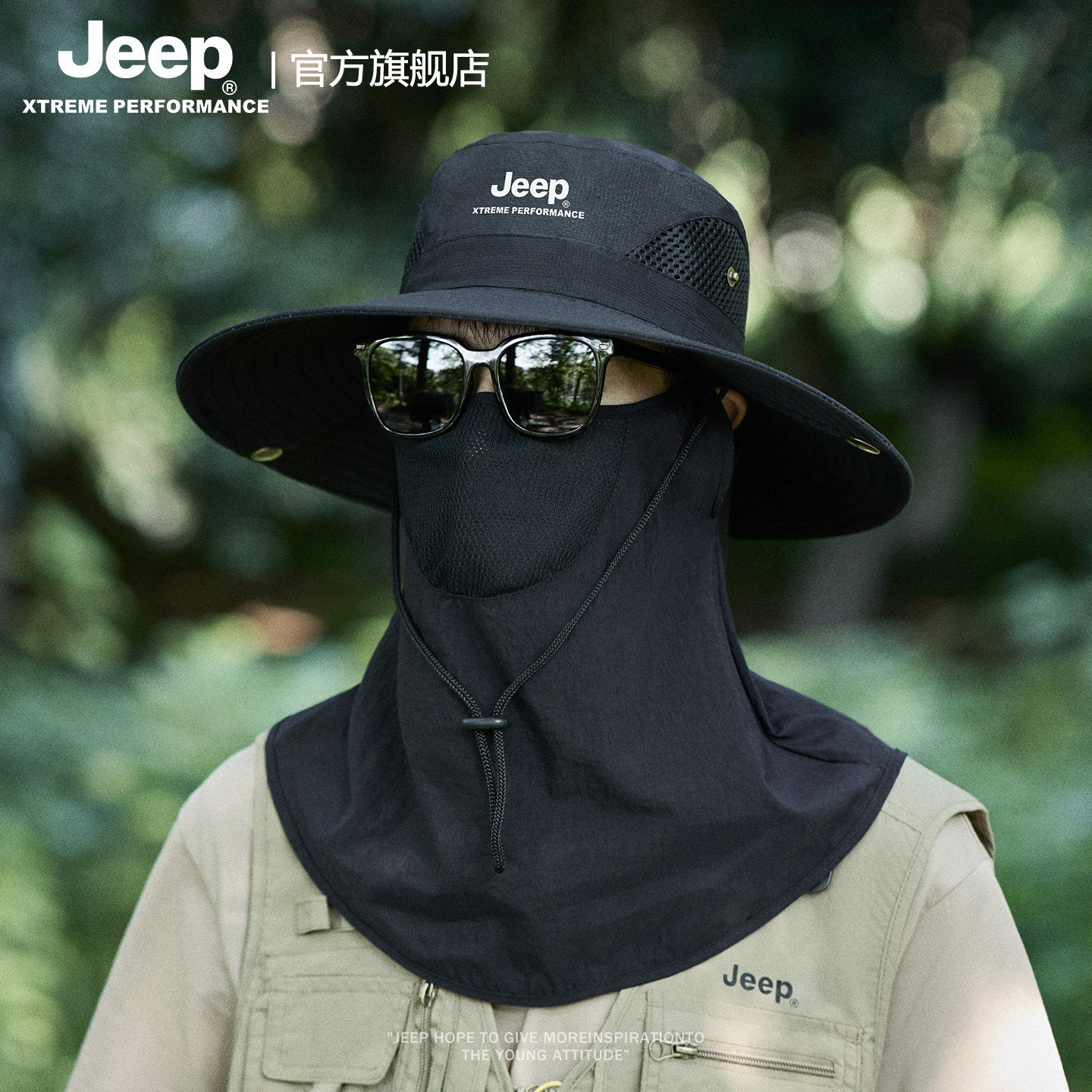 jeep吉普夏季男士大檐渔夫帽专业级户外钓鱼徒步防晒帽子透气面罩