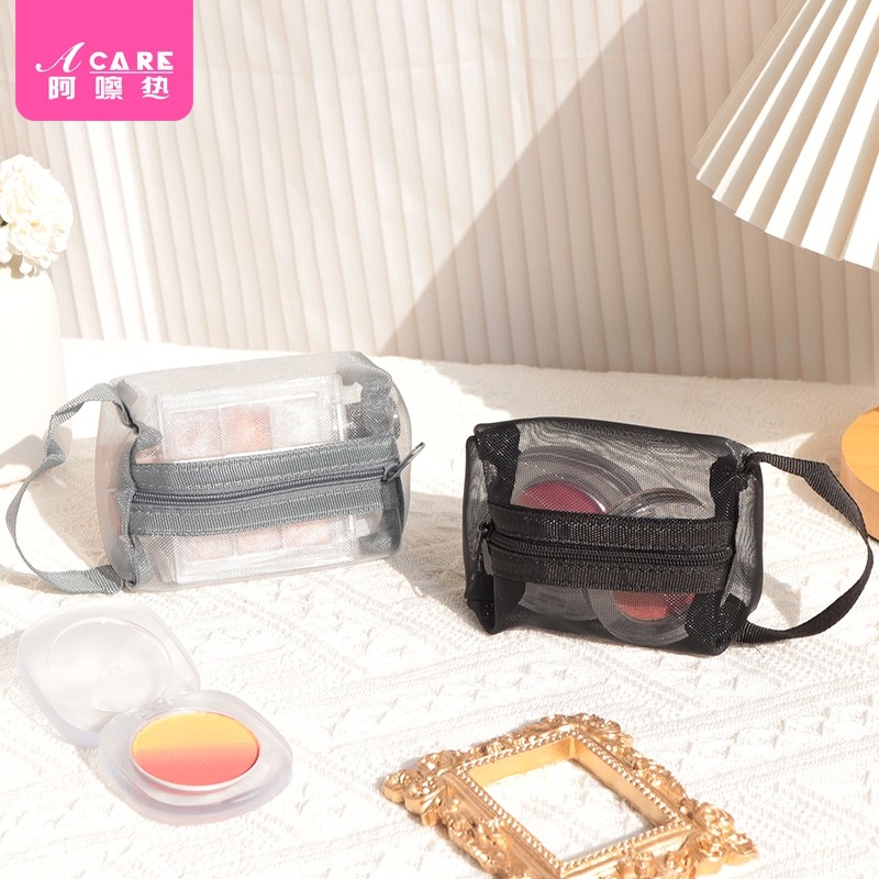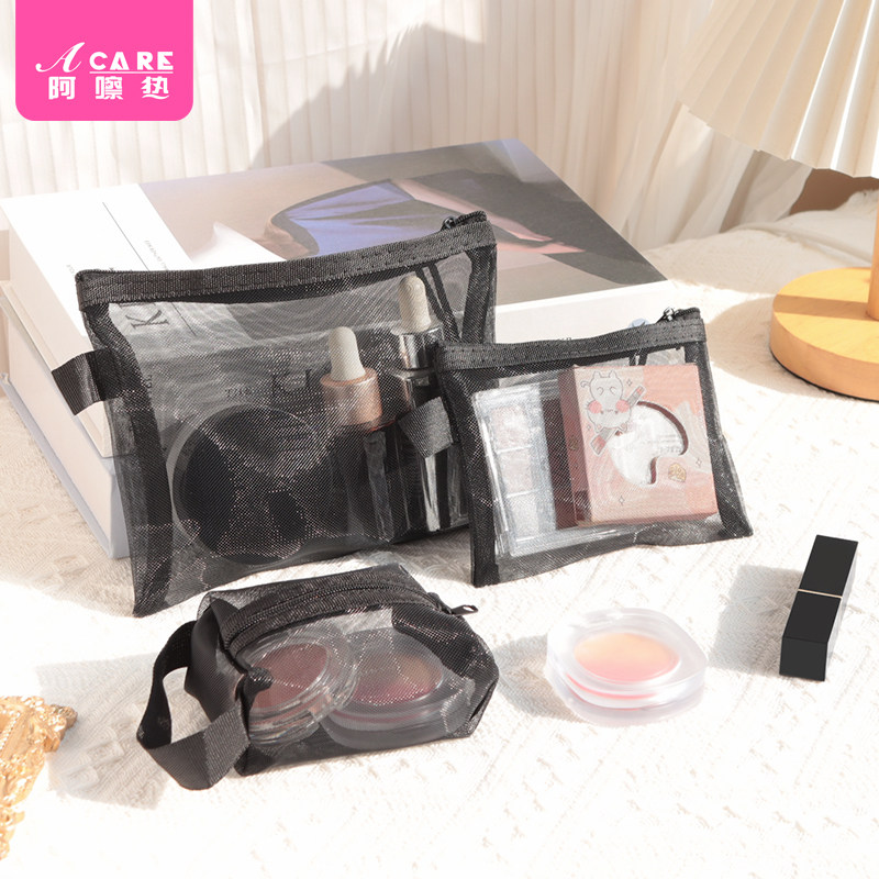 网纱化妆包洗漱收纳包便携式收纳袋整理包零钱笔袋证件袋口红网格