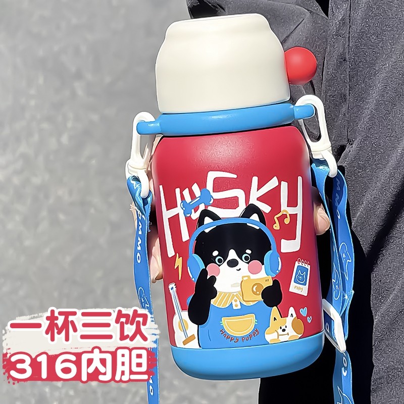 言仓线条小狗联名保温杯保冷儿童便携高颜值情侣女生圣诞生日礼物