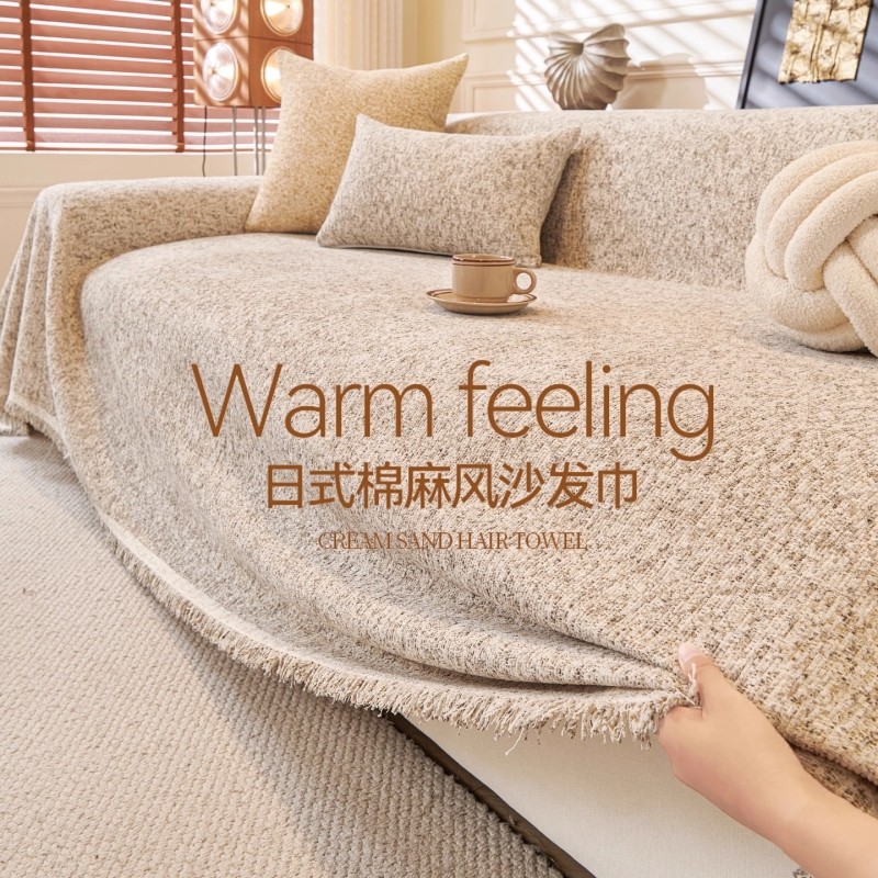 日式棉麻风沙发盖布四季通用高级感防滑防猫抓新款2025沙发巾毯垫