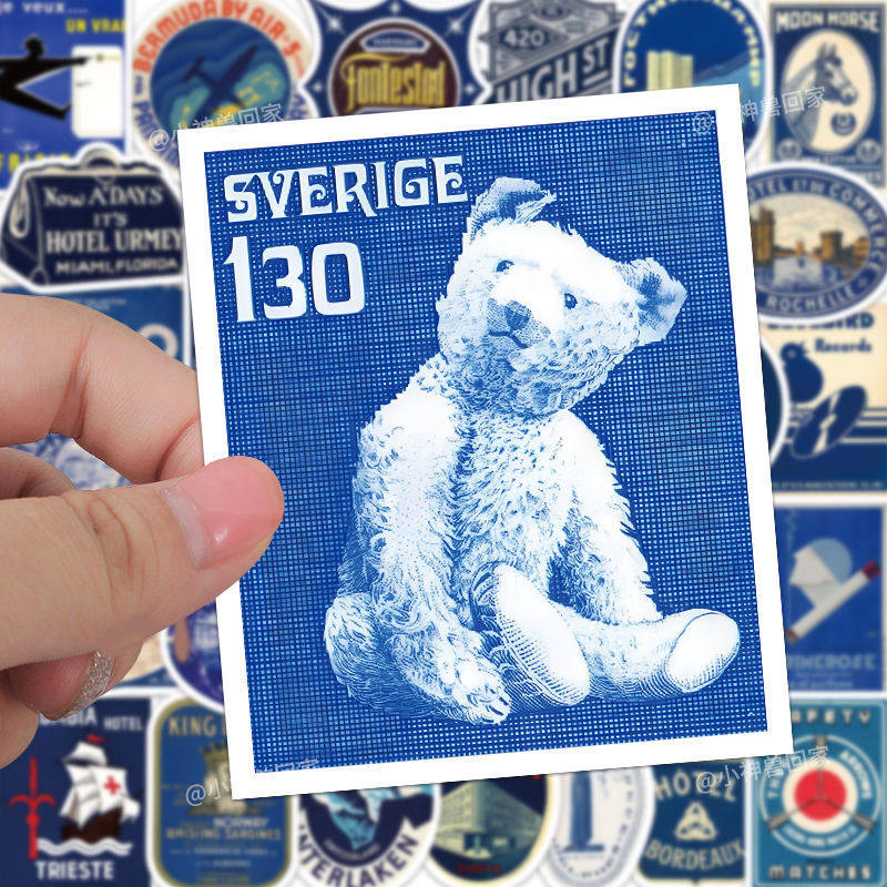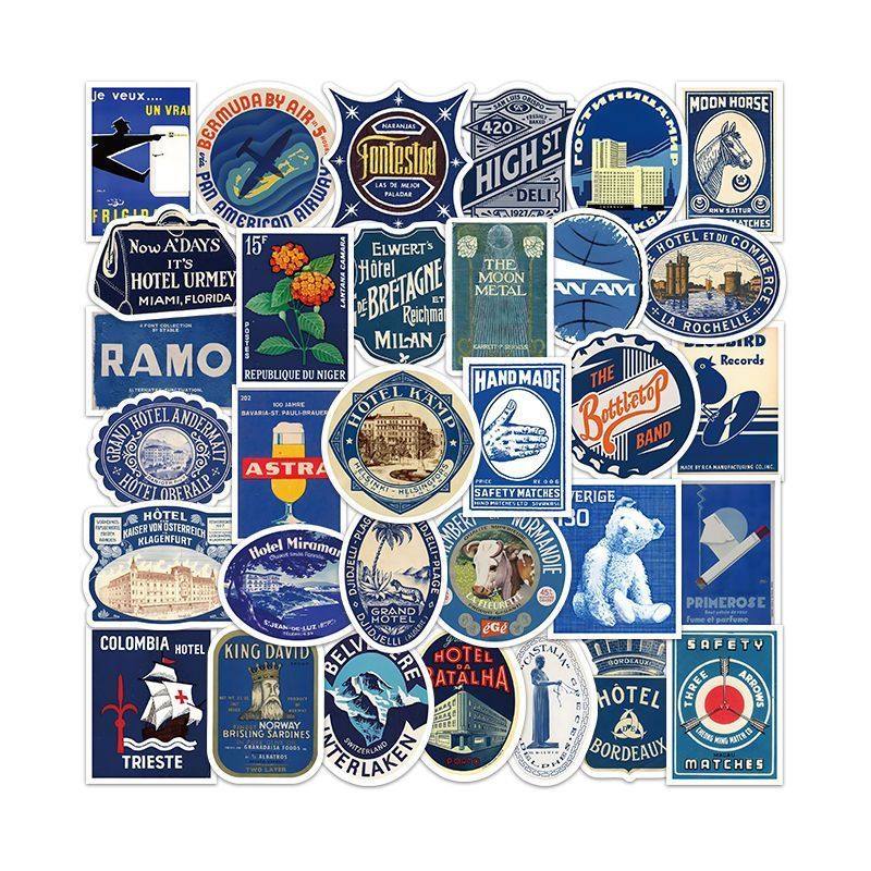 180张复古蓝色装饰贴纸ins风高级感小众简约个性创意防水贴画DIY