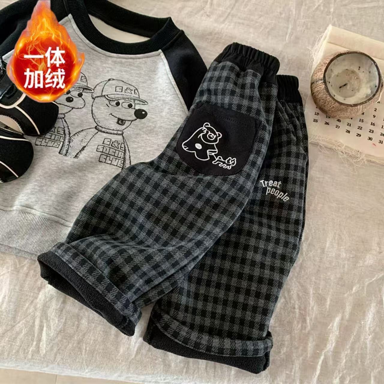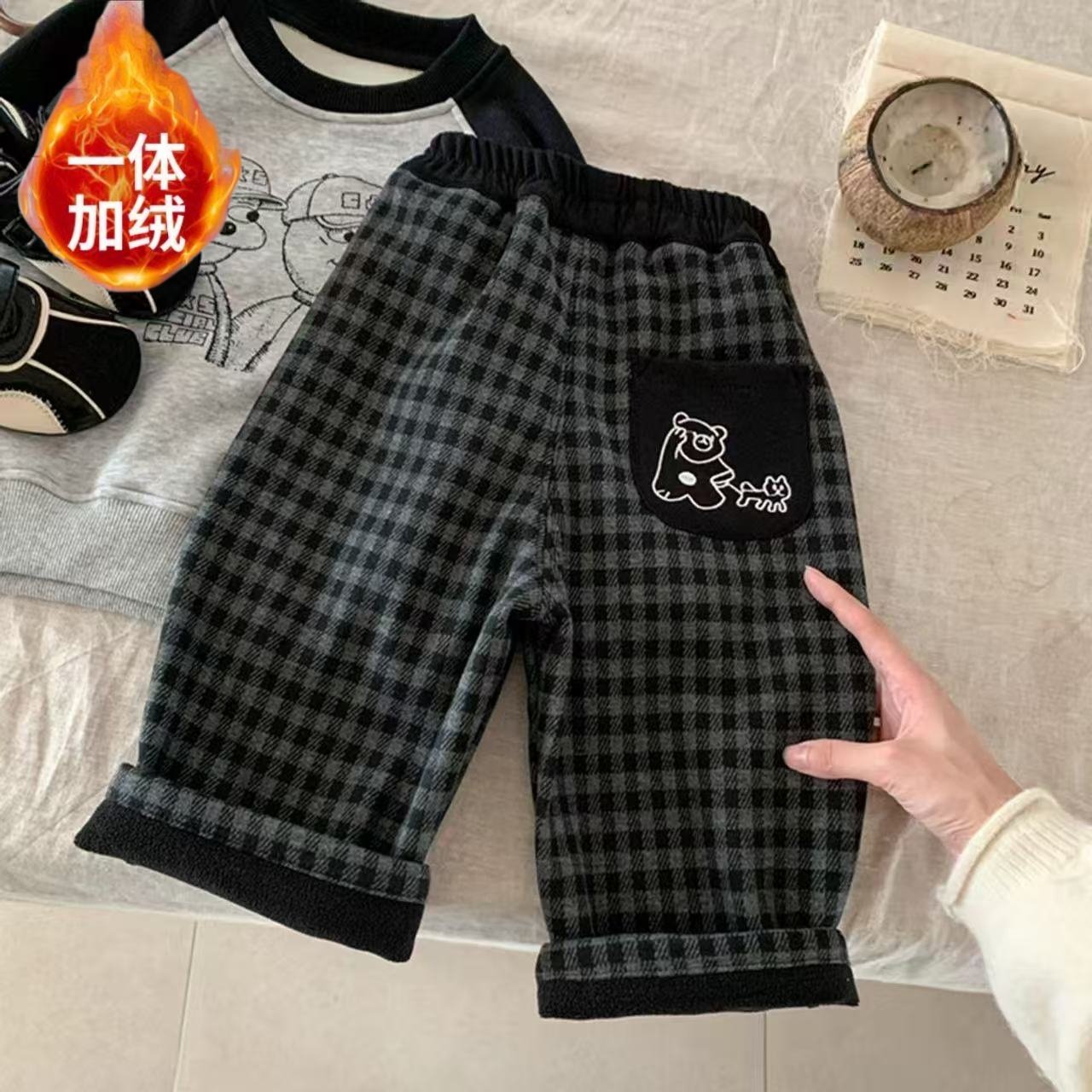 【李佳琦直播间】齐齐熊男童新年打底毛衣裤子冬款宝宝格子裤儿童
