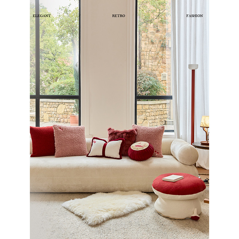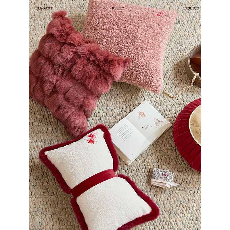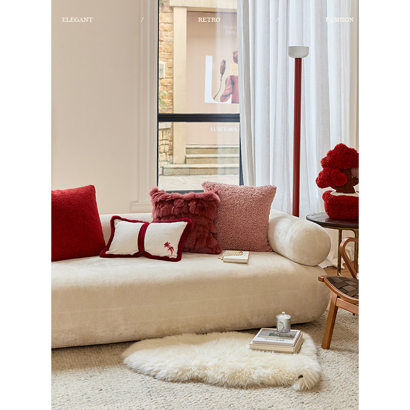轻奢复古红色客厅沙发睡觉靠垫节日新婚礼物